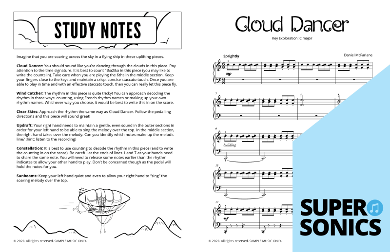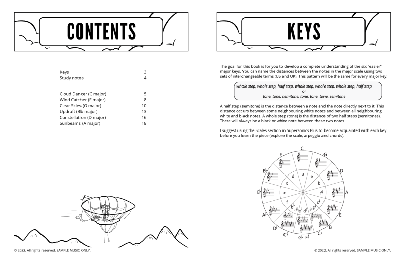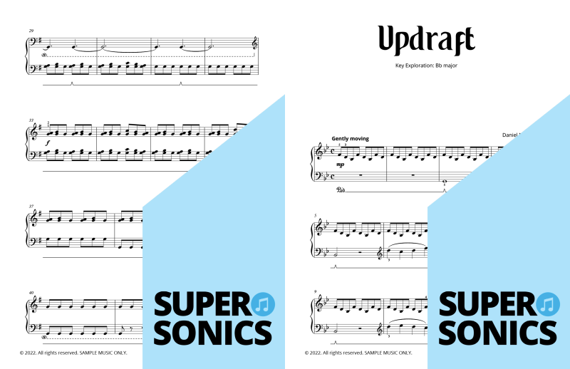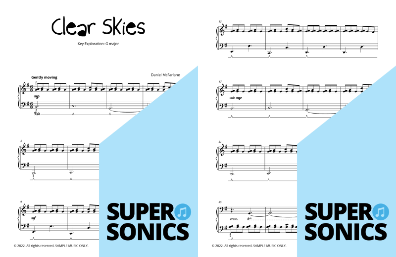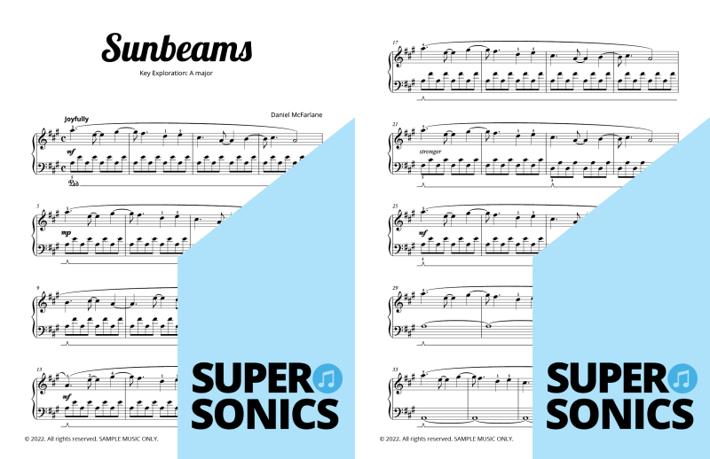 Supersonics Pro members also get every piece transposed into all other major keys—ideal for reinforcing reading, transposition skills, and keyboard geography.