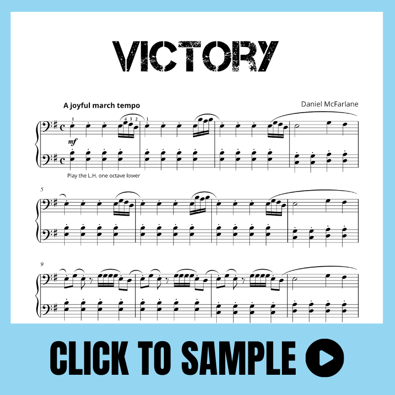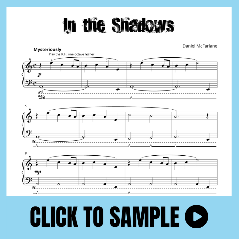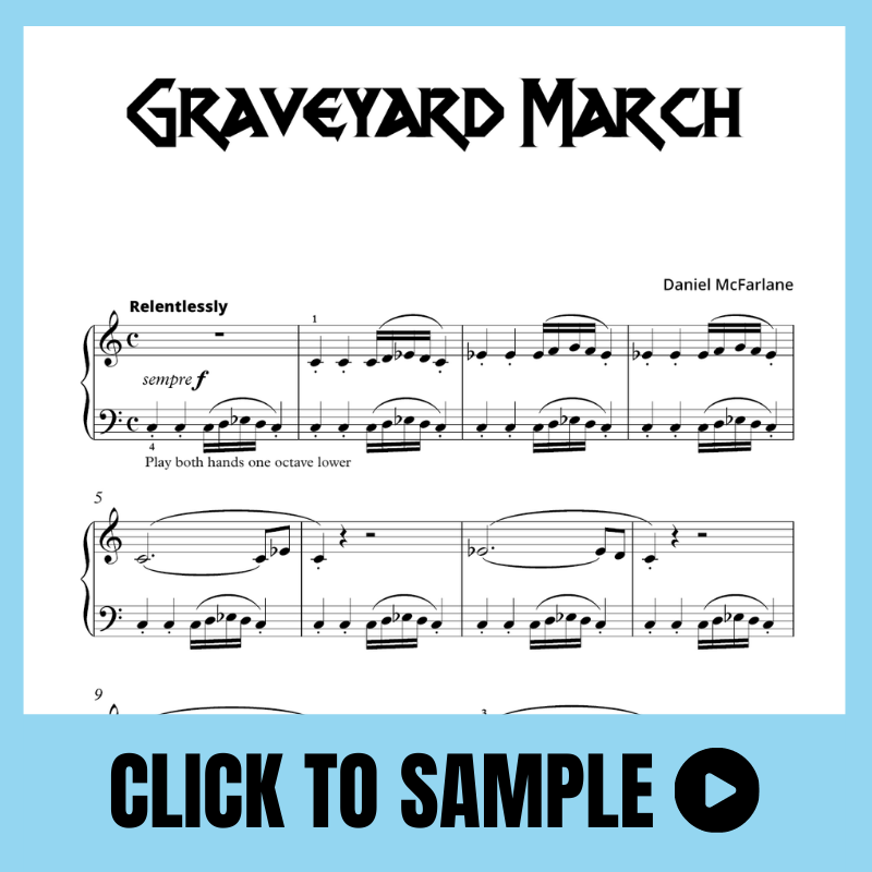 Taking inspiration from cinematic soundtracks, Daniel McFarlane’s original pieces continue the story from Grimswood Hold. Featuring vivid musical imagery, students are encouraged to use expressive playing to take listeners on their journey for freedom. Extending their range across more of the piano, this sequel features fantasy action music they’re guaranteed to love. There are three levels to explore — Training Hall, Arena, and Throne Room. Students won’t even notice the pieces get progressively harder as they go, as they’ll be engrossed in the grand escape. By the end of the book you’ll notice stronger expressive playing and coordination skills. Students can take pride in their progress, ticking off each piece on the included map.
