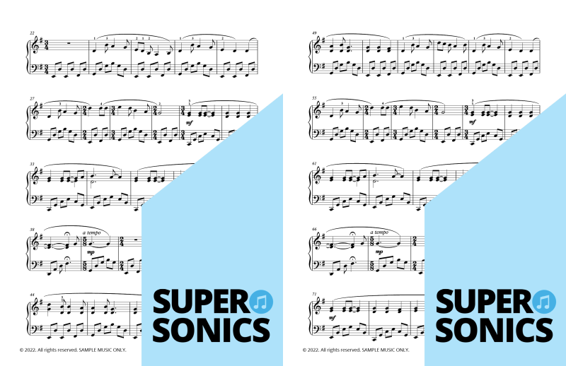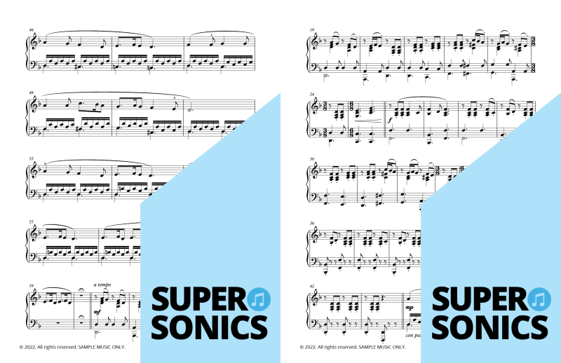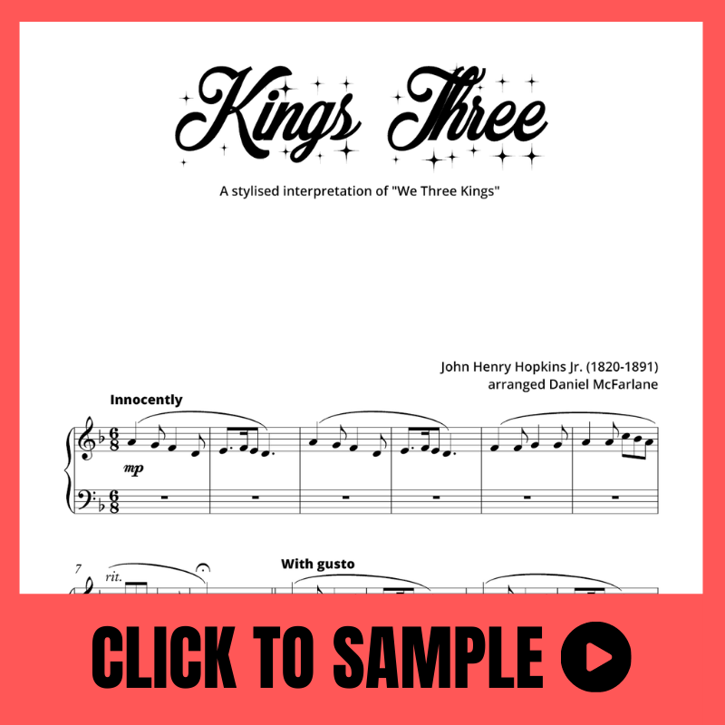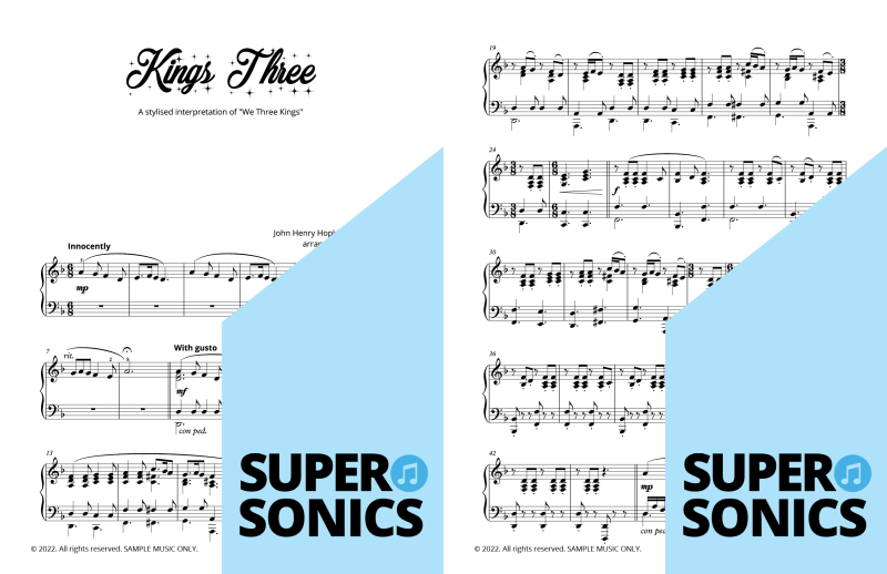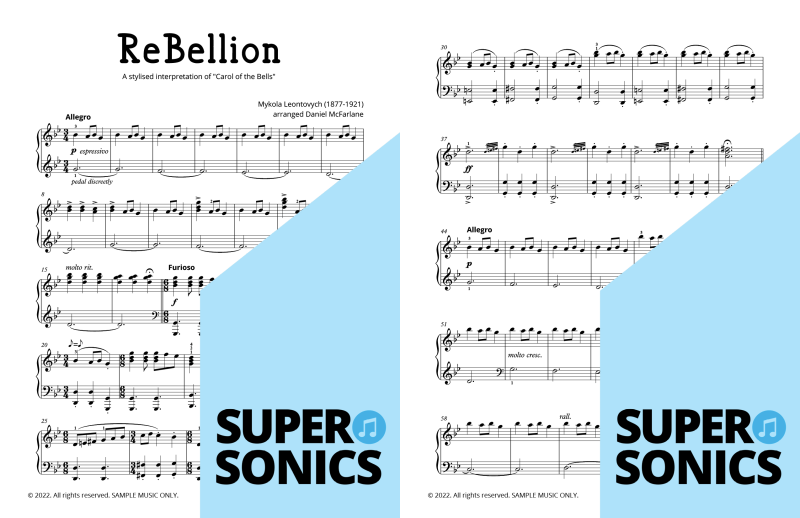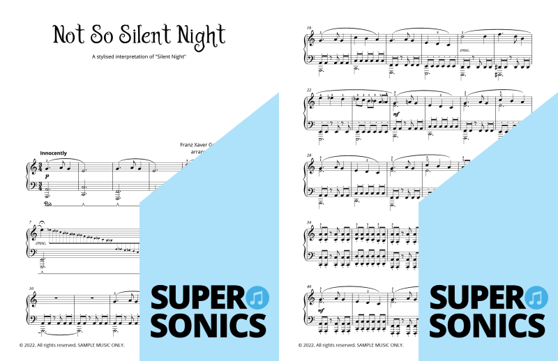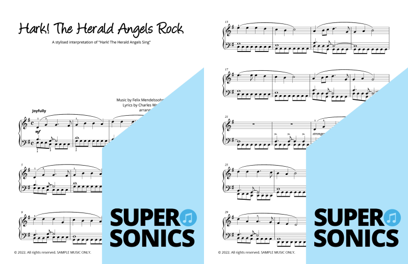 Daniel McFarlane has given ten Christmas carols the “Supersonics” treatment. These playful early Intermediate to Advanced arrangements are loads of fun to play and teach. They also make superb concert pieces! This book features:
