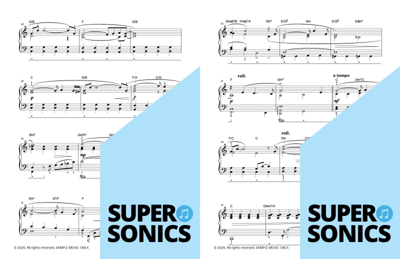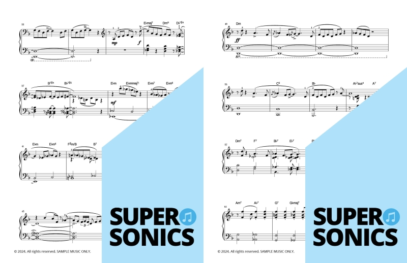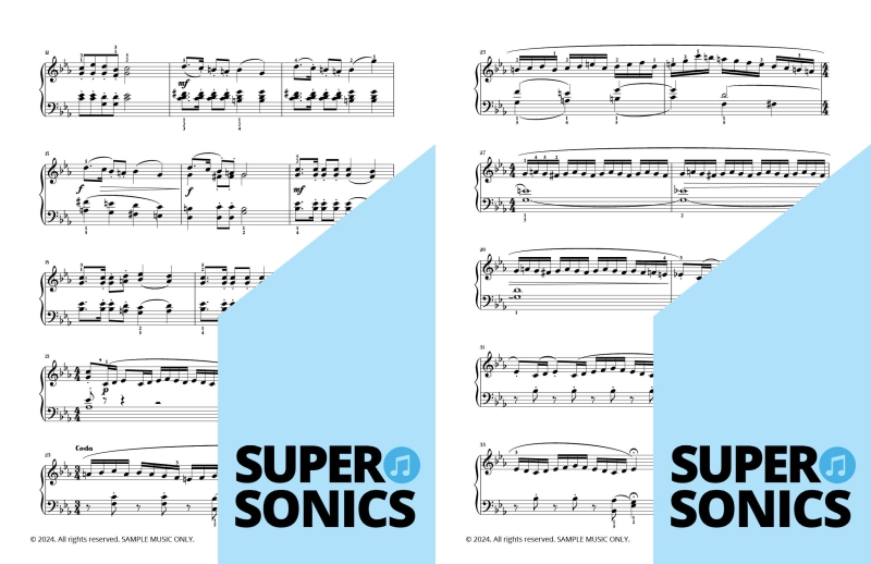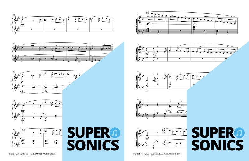 This option is available for Supersonics Pro members only. You get immediately downloadable PDFs of the scores, and a full-color cover. This option is studio-licensed and you can use it with all your students forever. You also activate the exclusive content available in Supersonics Plus and are able to order our professionally printed hardcopies. Pro members can purchase this package in the Pro member store