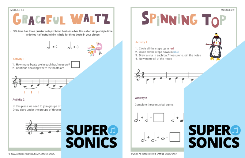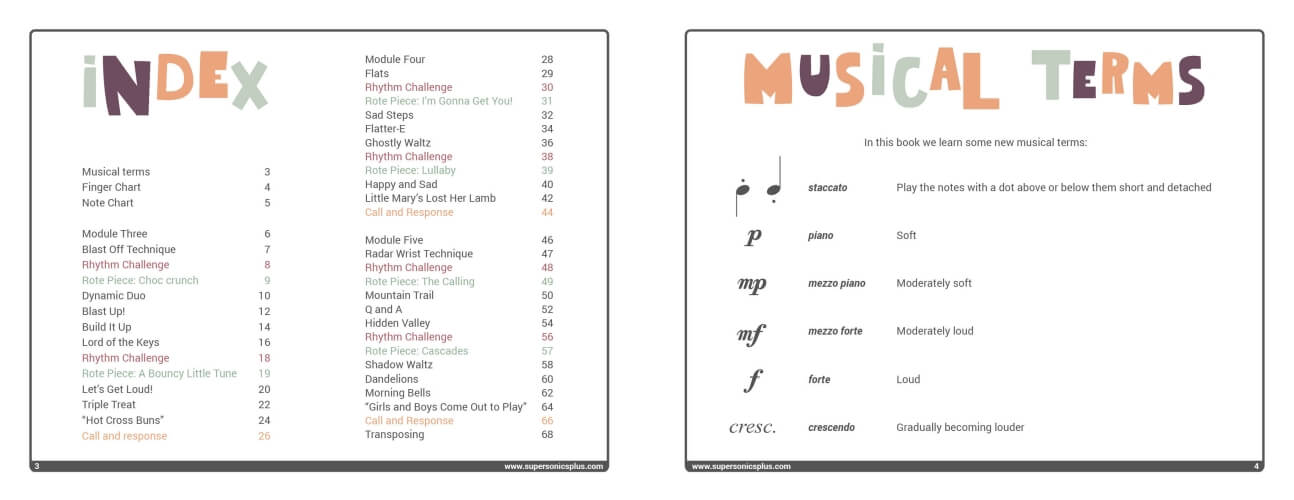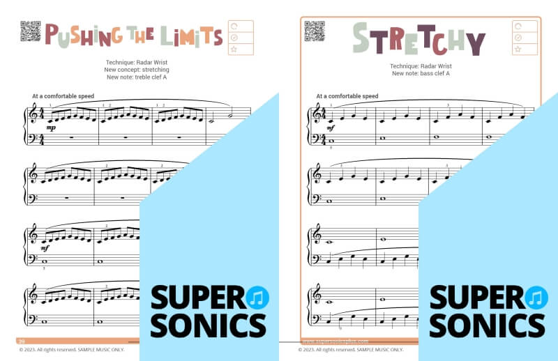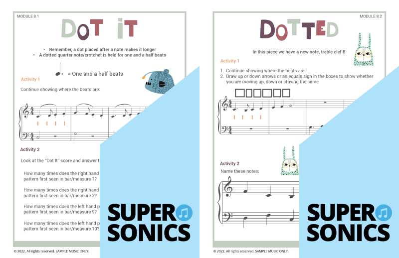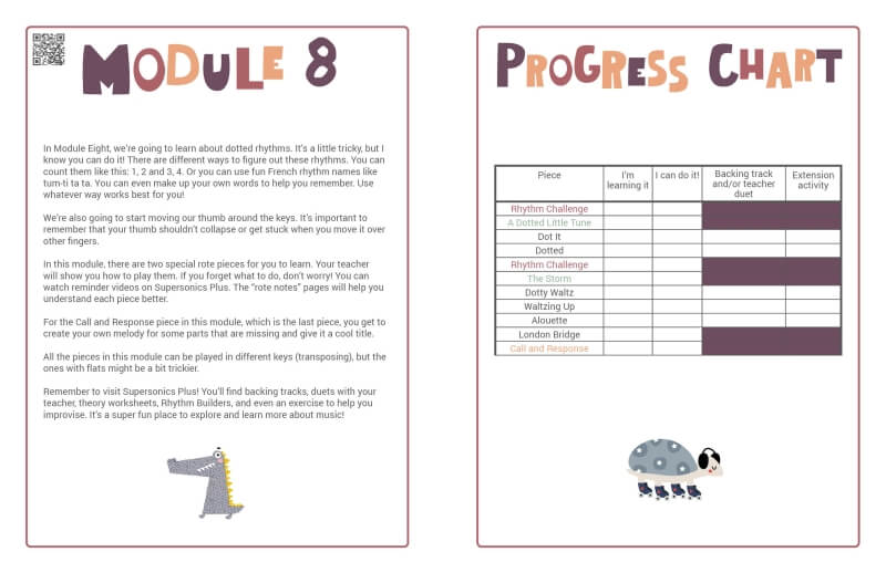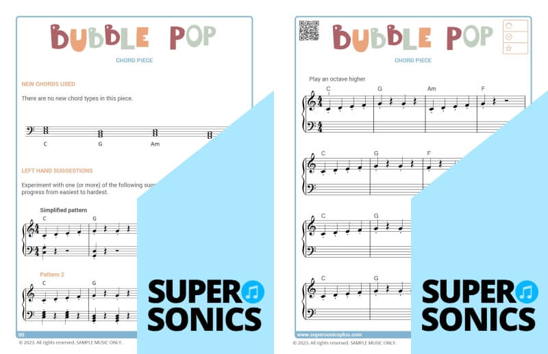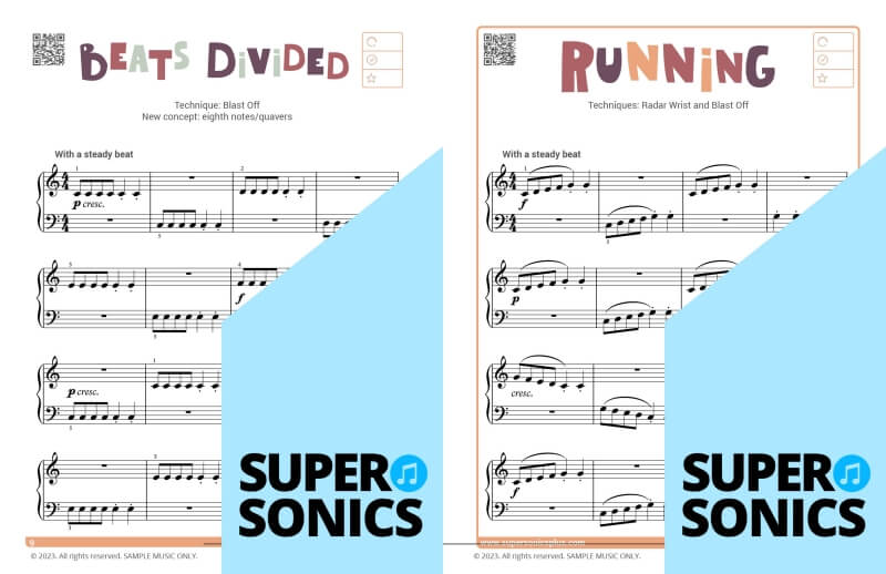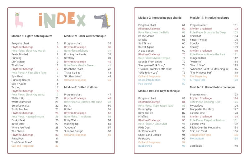 - Introduction of eighth notes/quavers, dotted rhythms, pop chords, and comprehensive technical development
