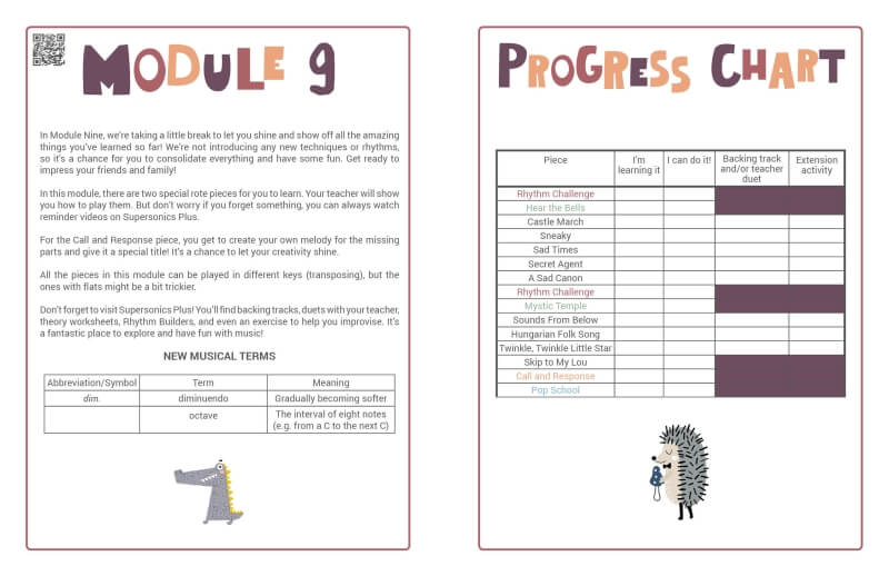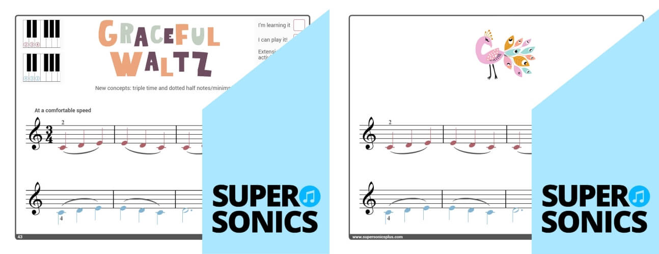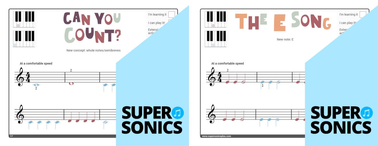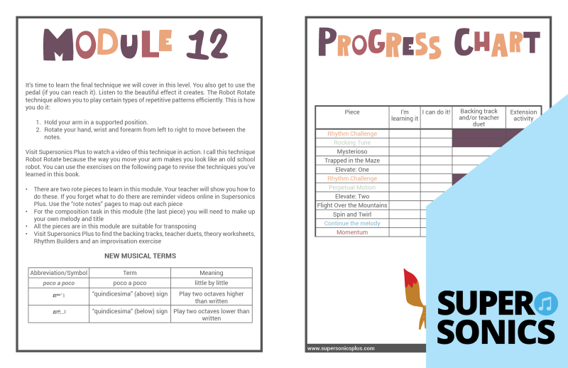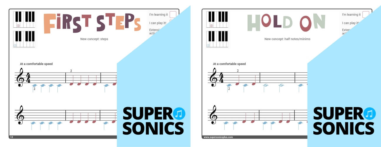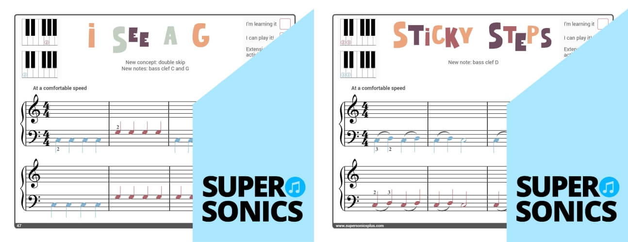 - Introduction of eighth notes/quavers, dotted rhythms, pop chords, and comprehensive technical development
