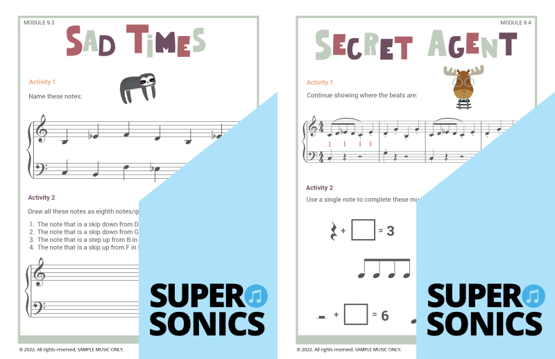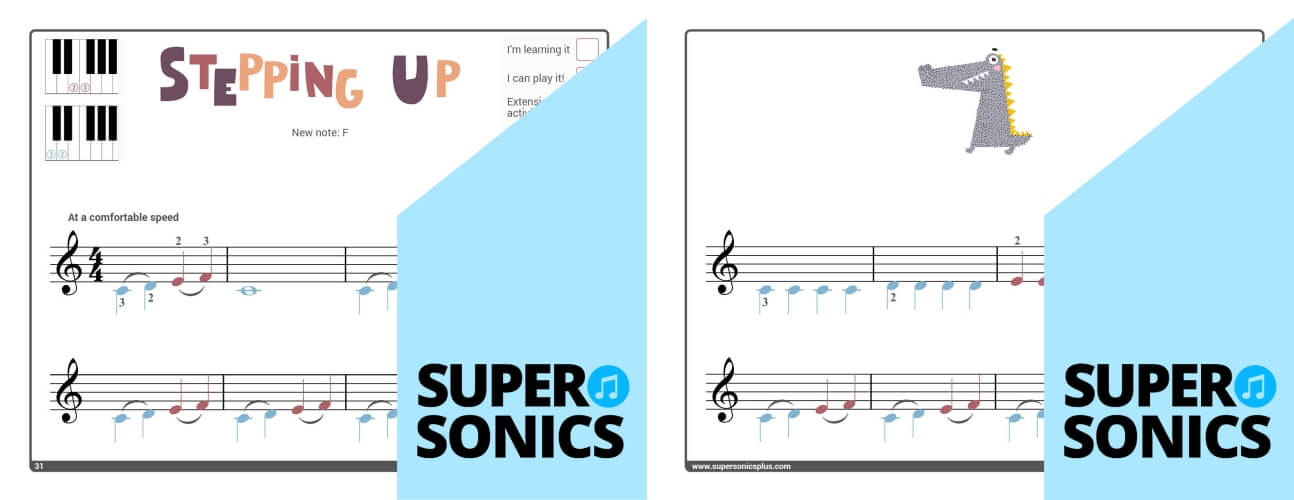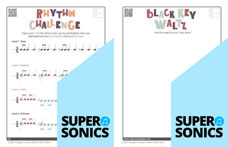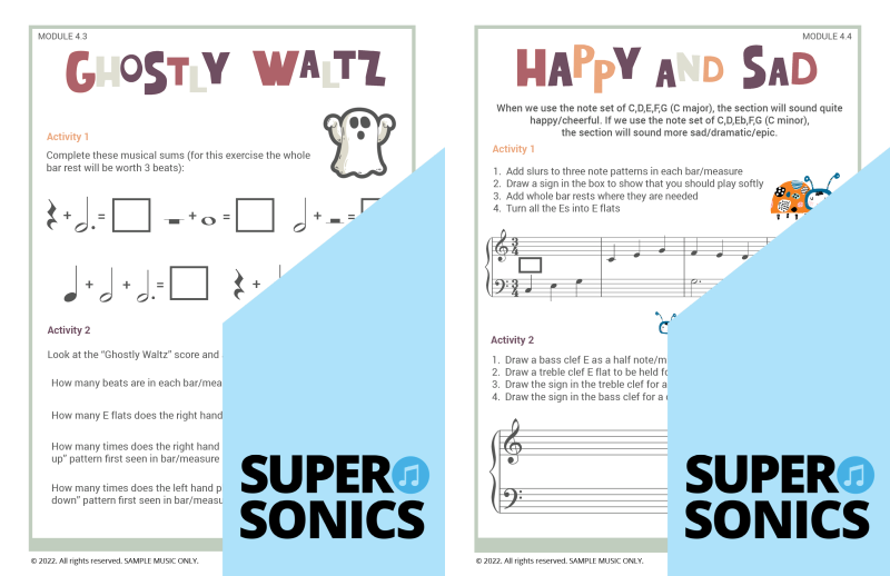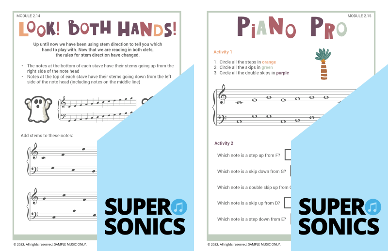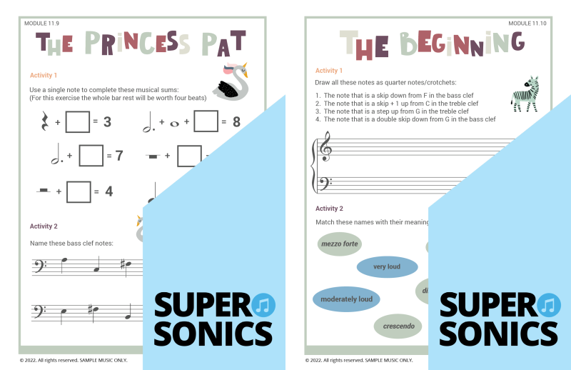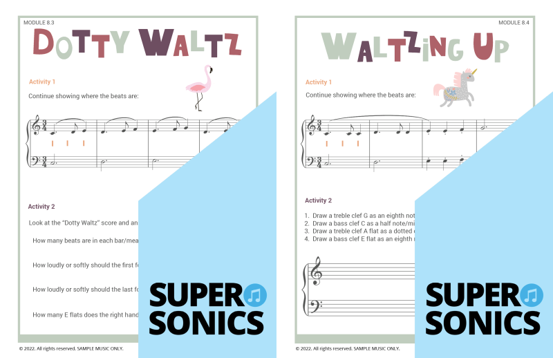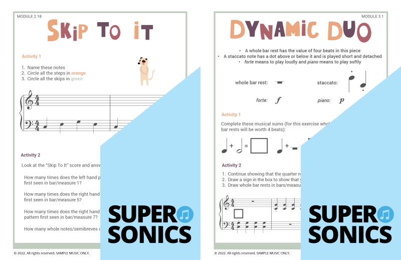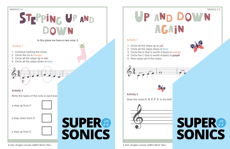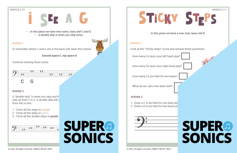 Level 1C concludes the series by covering the remaining modules of Level 1. Here, students are introduced to eighth notes/quavers, dotted rhythms, and pop chords.