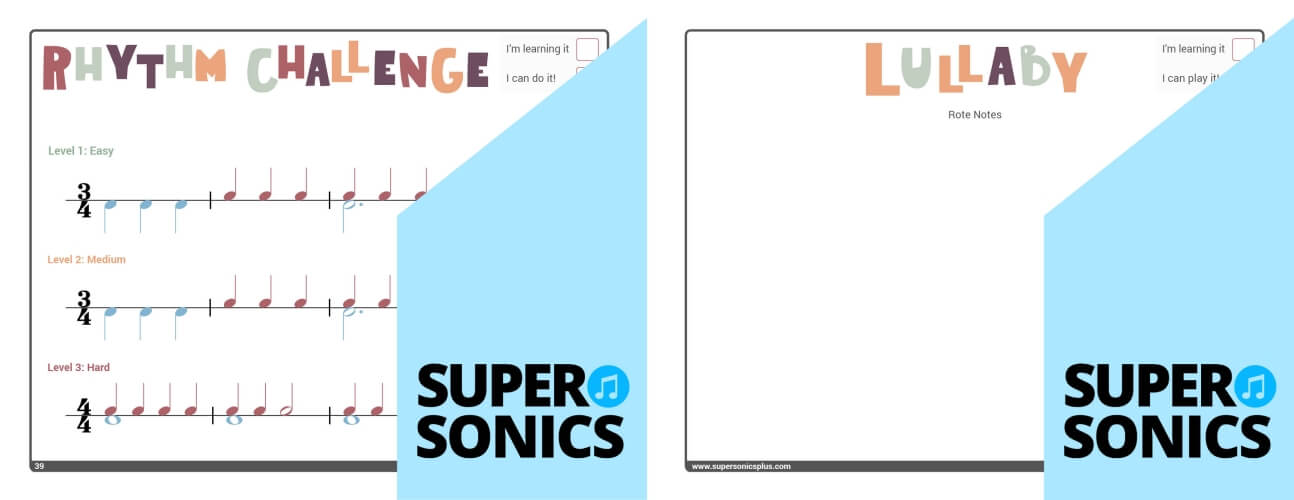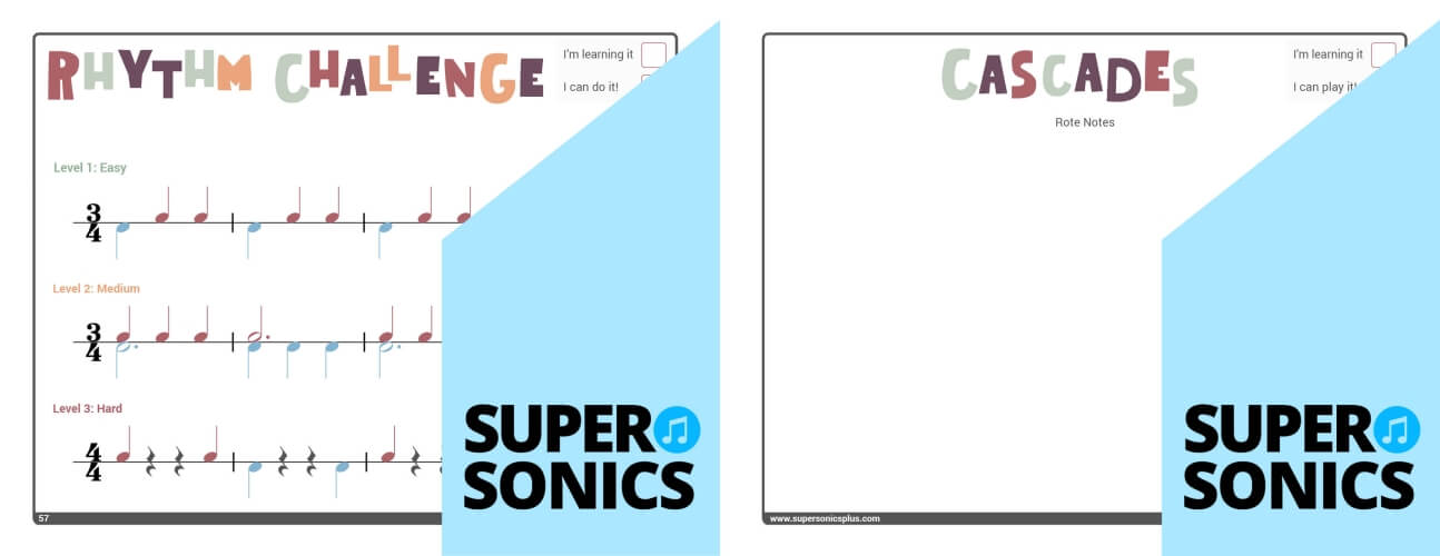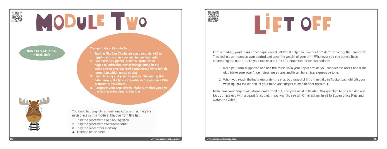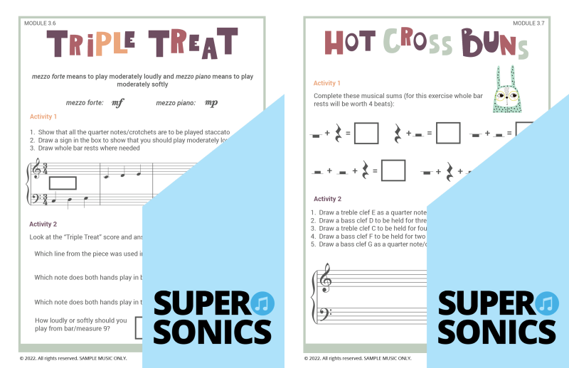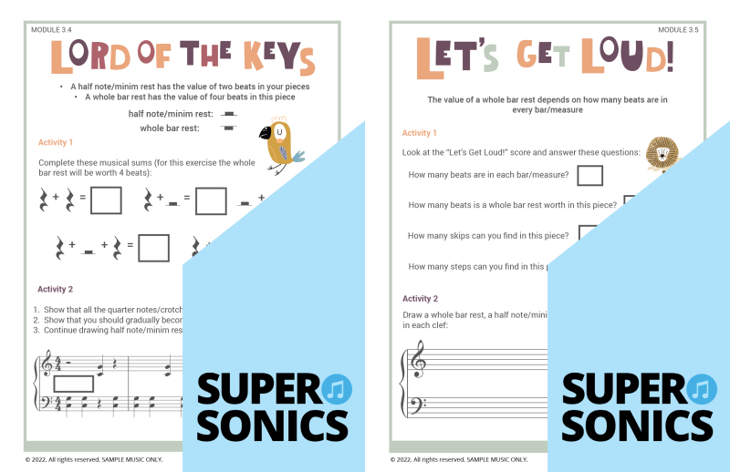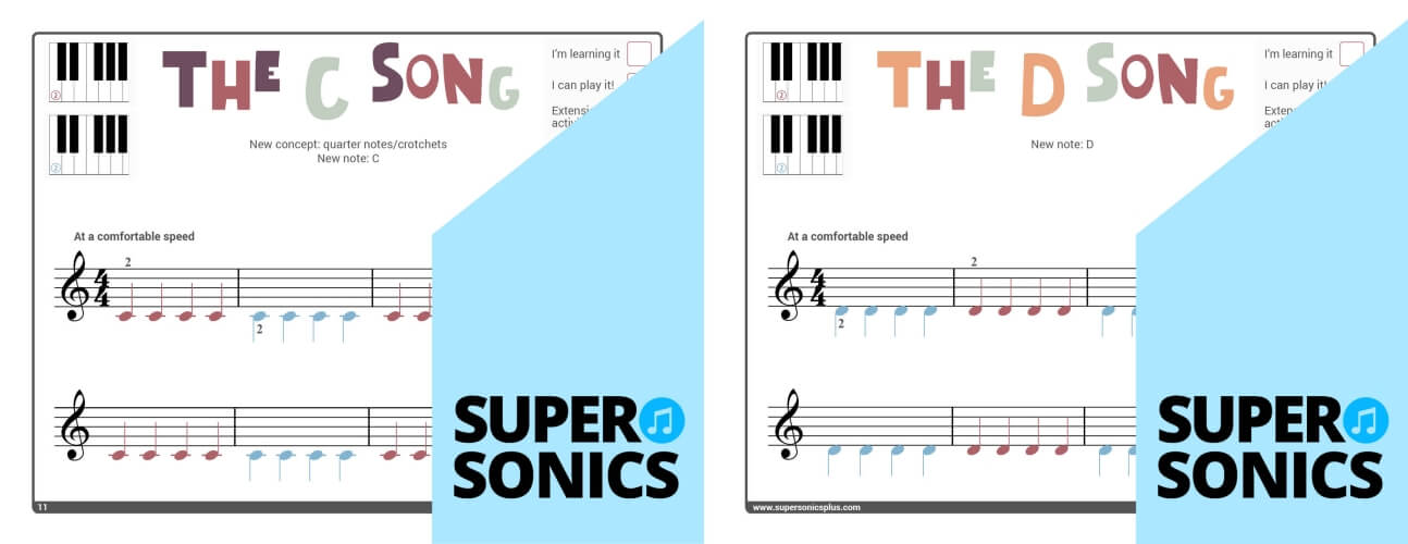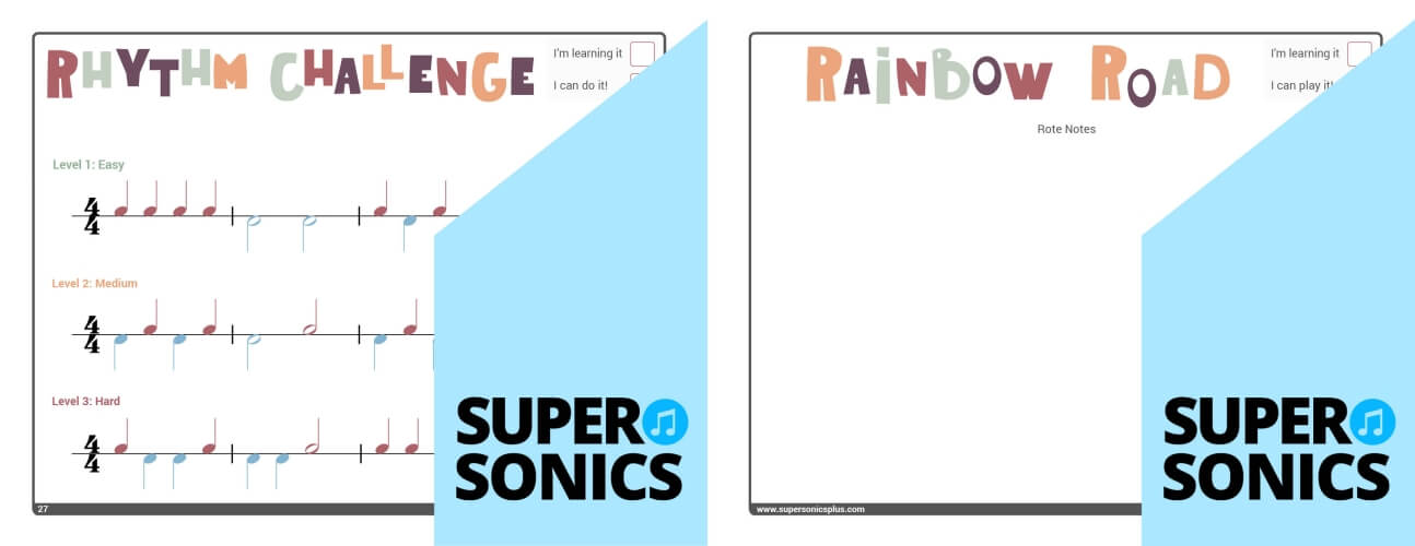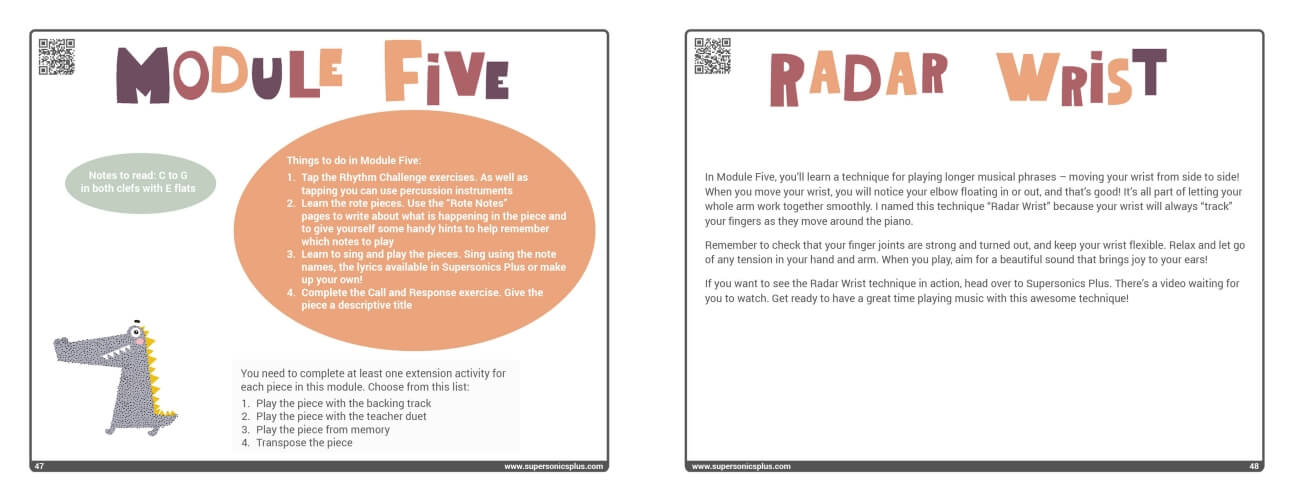 Level 1C concludes the series by covering the remaining modules of Level 1. Here, students are introduced to eighth notes/quavers, dotted rhythms, and pop chords.