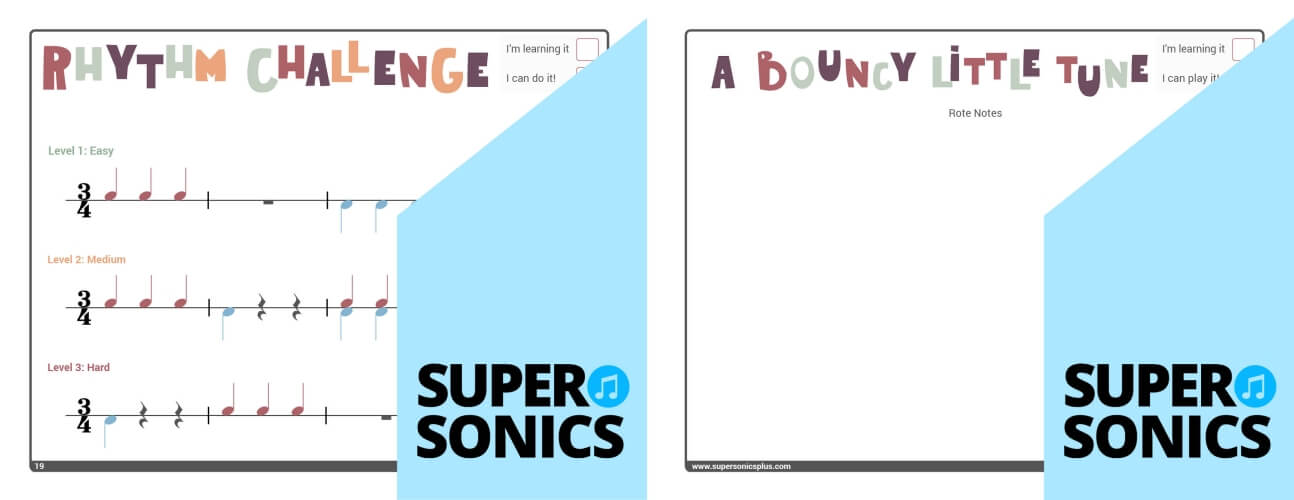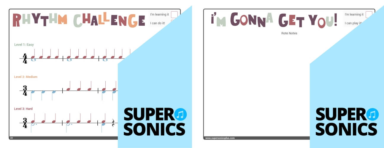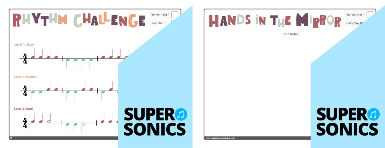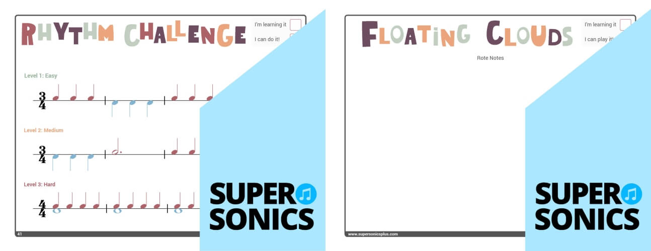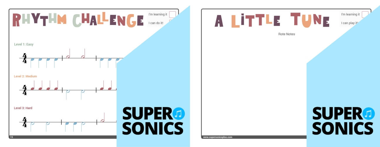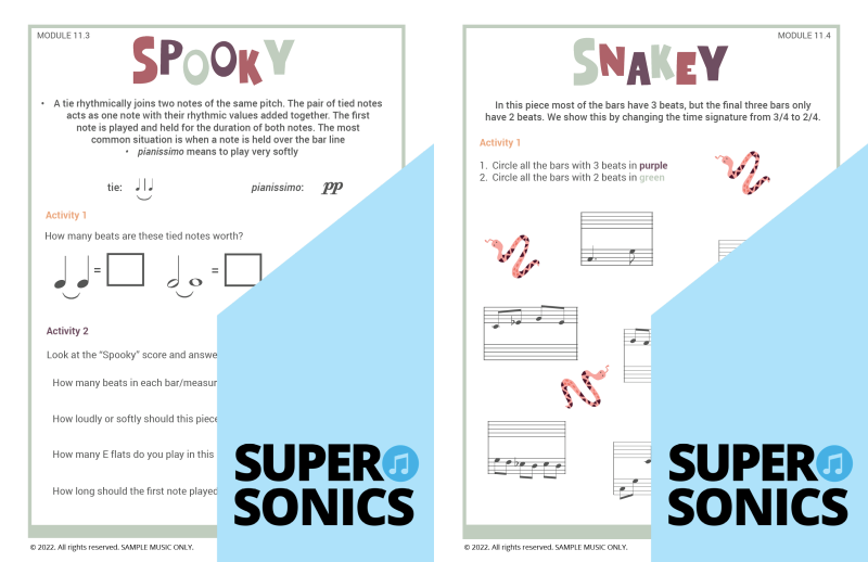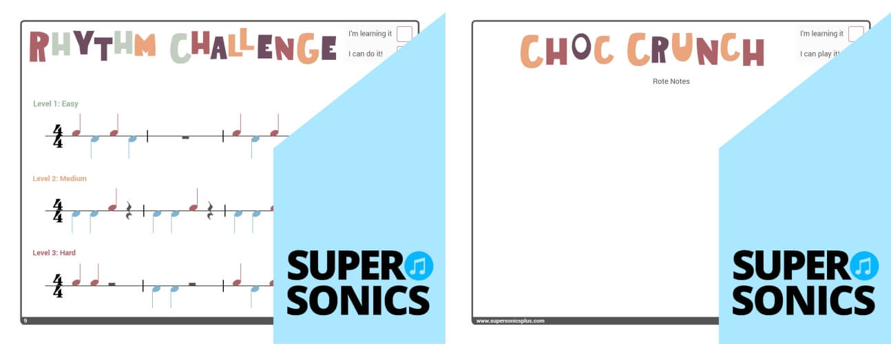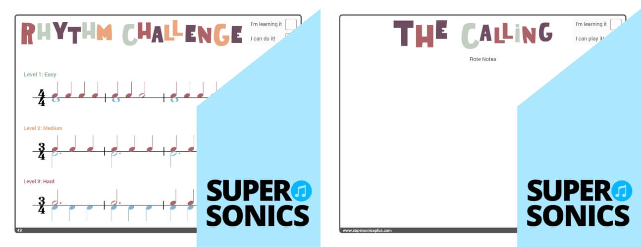 Level 1C concludes the series by covering the remaining modules of Level 1. Here, students are introduced to eighth notes/quavers, dotted rhythms, and pop chords.