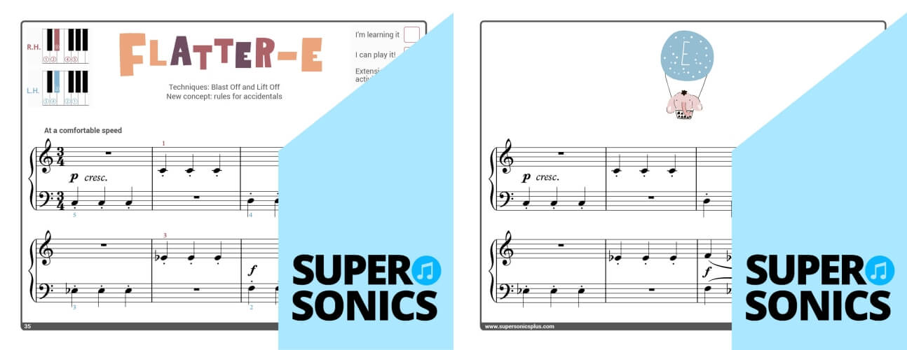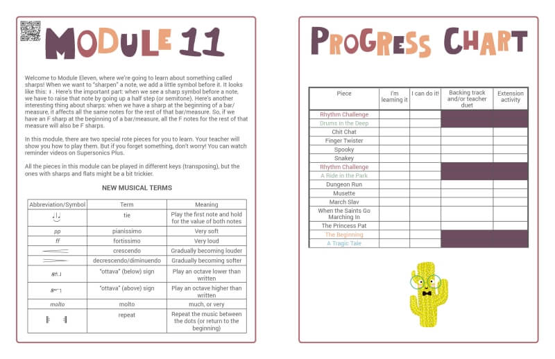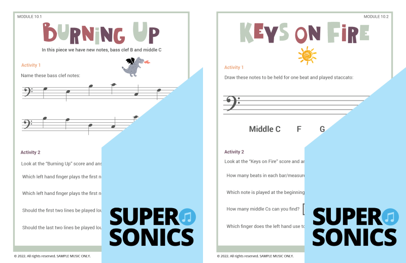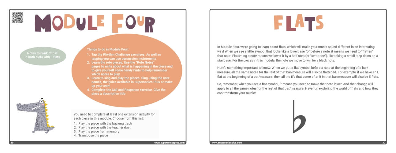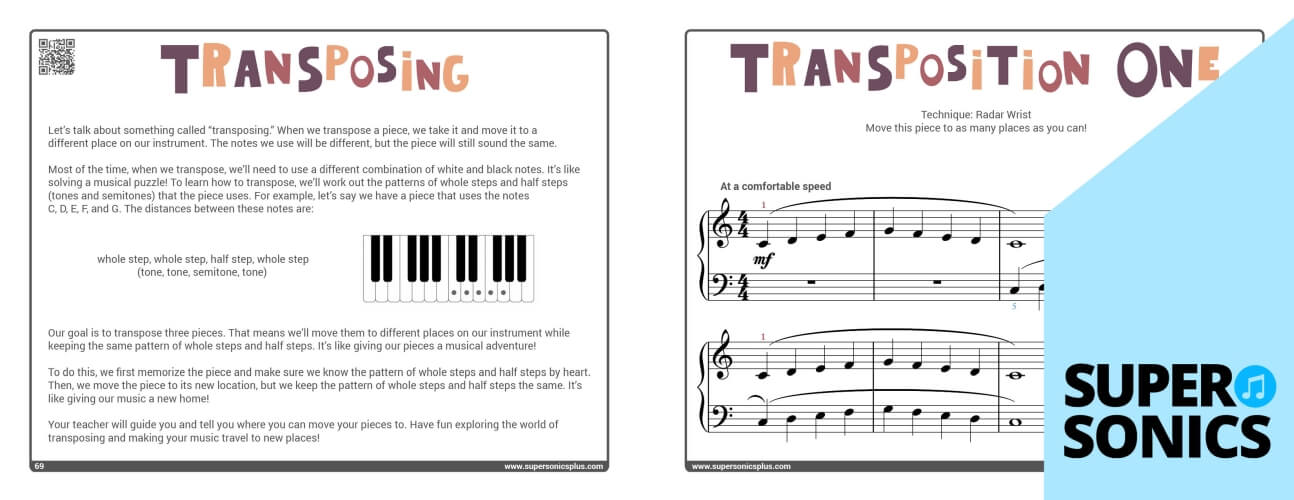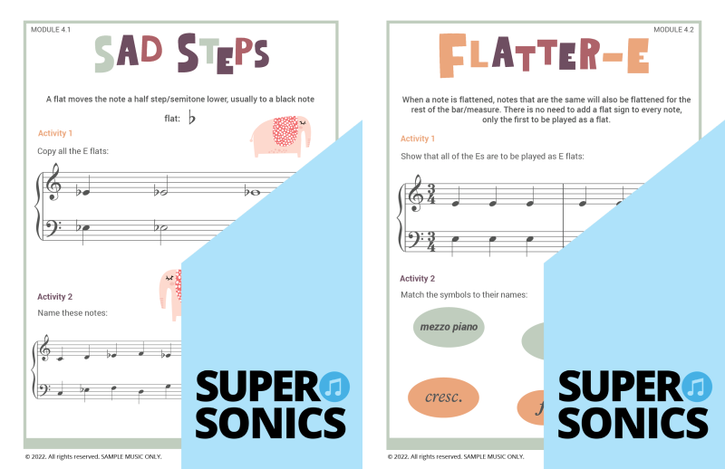 Level 1B encompasses the next three modules of Level 1. Following the same format as 1A, this level introduces flats, staccato, dynamics, and transposition.