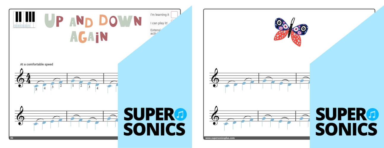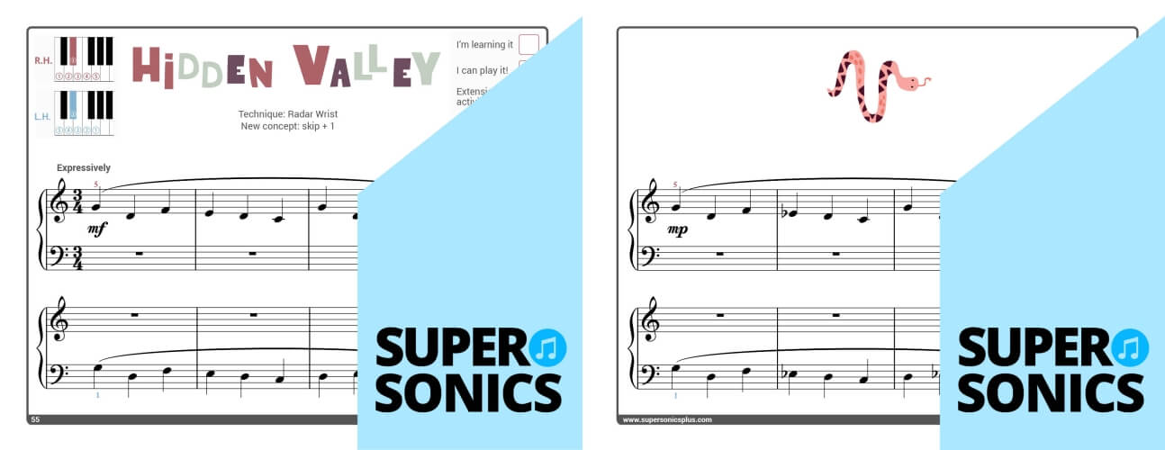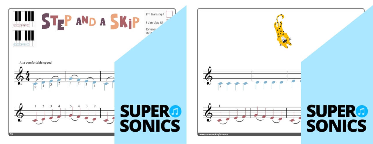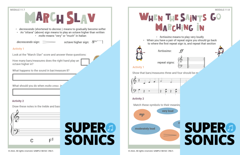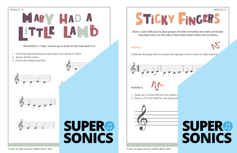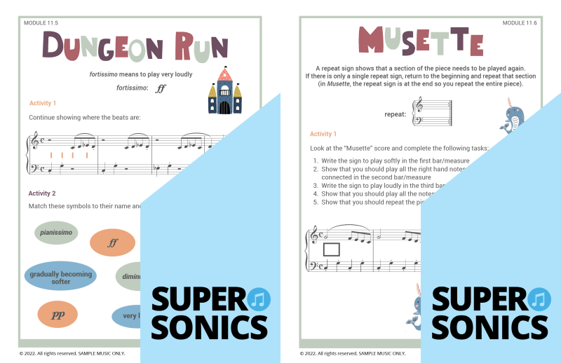 Level 1B encompasses the next three modules of Level 1. Following the same format as 1A, this level introduces flats, staccato, dynamics, and transposition.