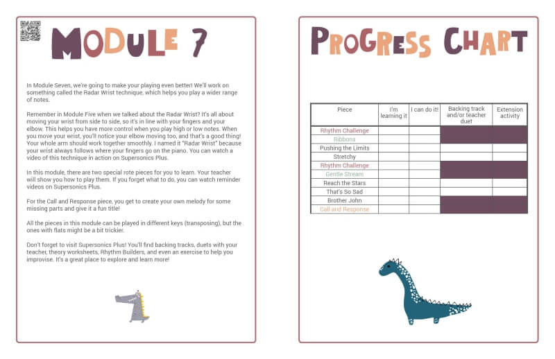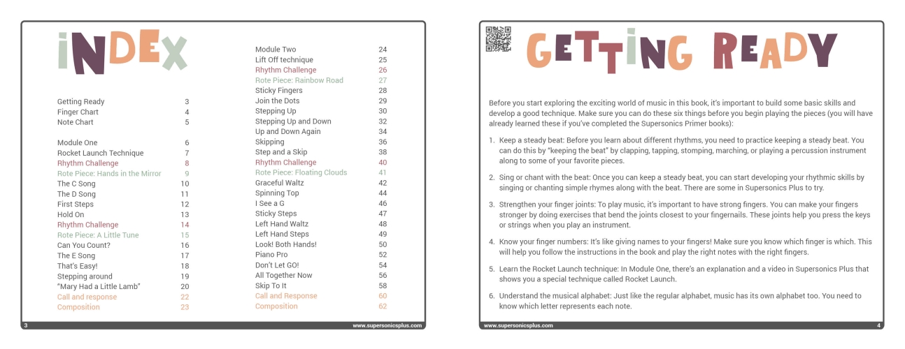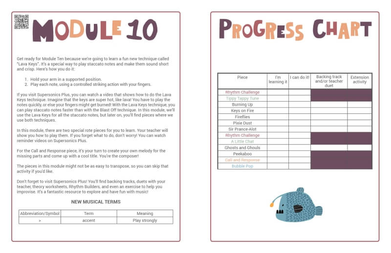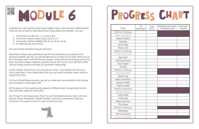 Level 1A comprises the first two modules of Level 1. Students engage in rote pieces to explore the instrument, learn technical gestures, and enhance musical memory. Additionally, they encounter simple reading pieces, Rhythm Challenges, and creative exercises. Notably, students begin playing with both hands from the very first piece.