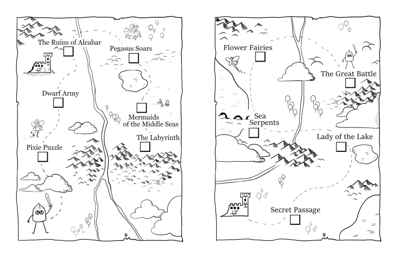 This print book combines five quests — Winter Whispers (C minor), Land of the Middle Seas (Middle C position), Skyward Realms (three treble clef Cs), Dungeon Beats (left hand moving down from C), and Treetop Adventures (right hand moving down from C) — into one vibrant volume.
