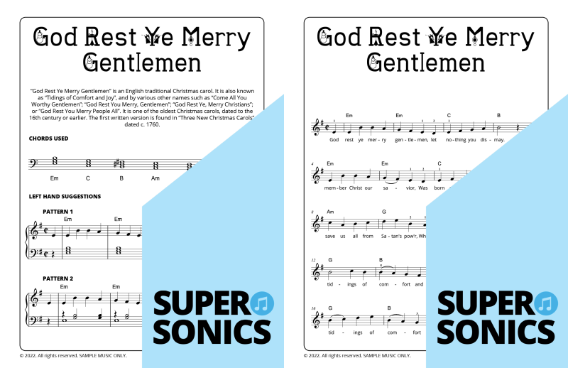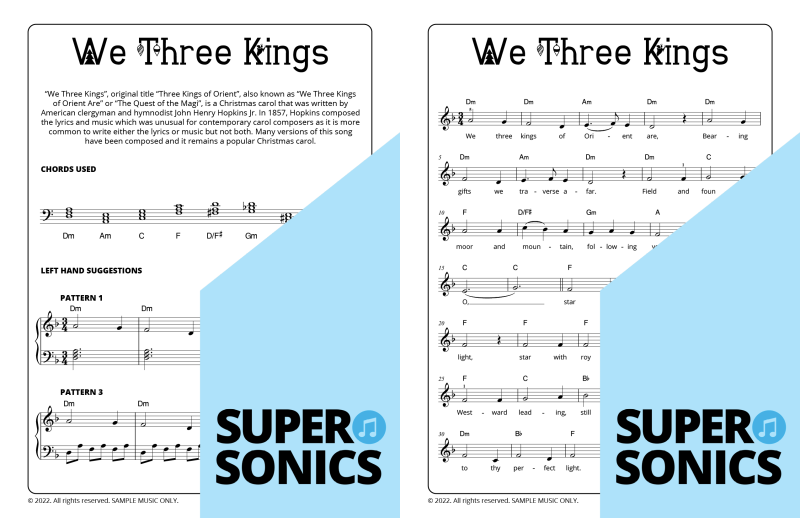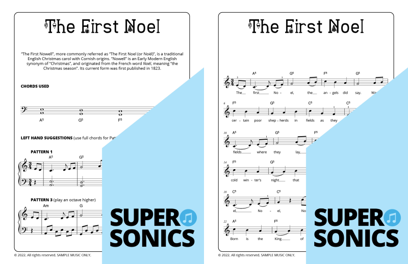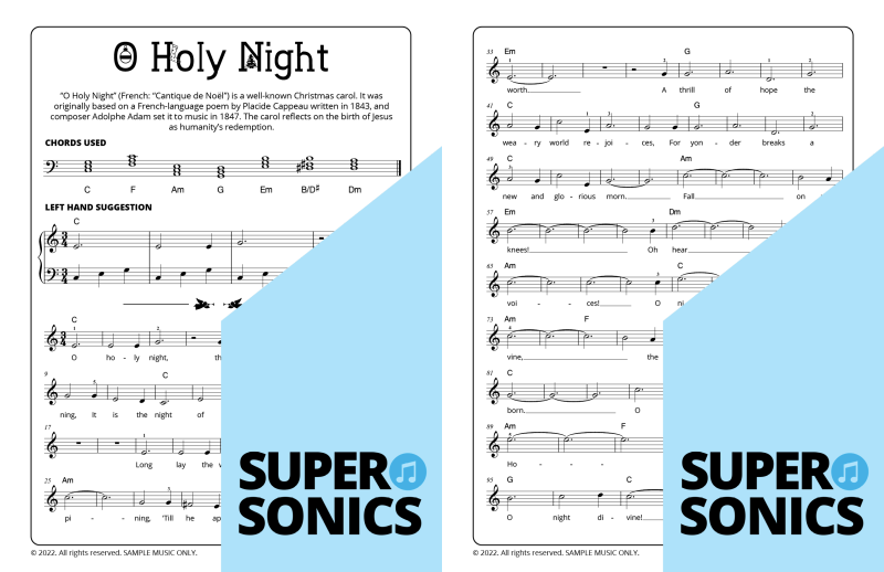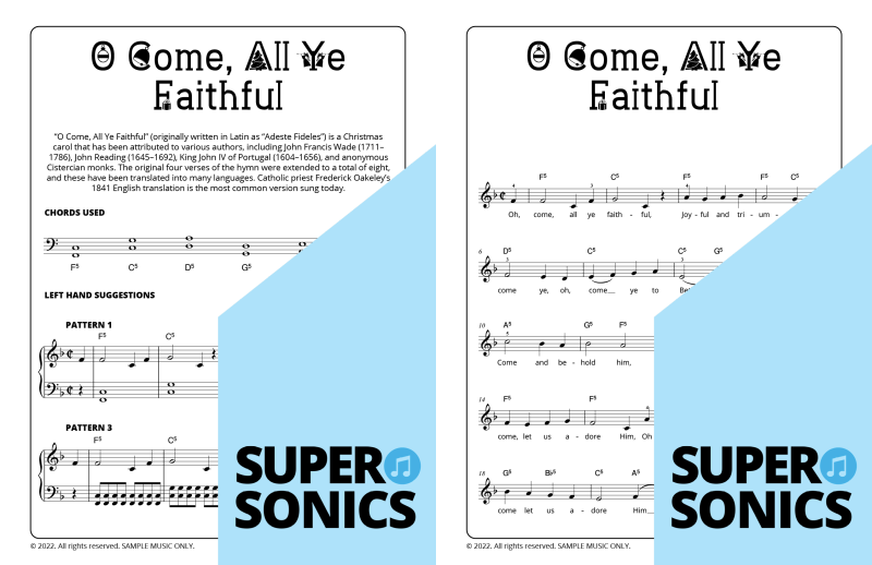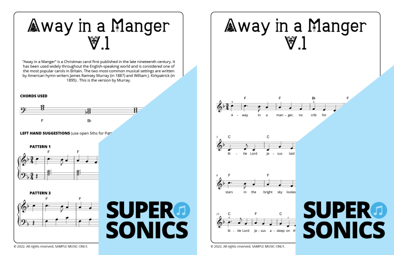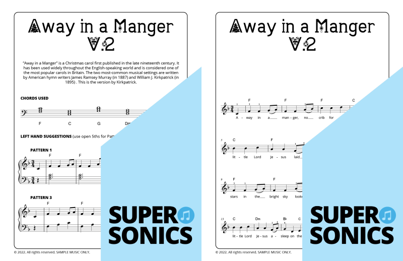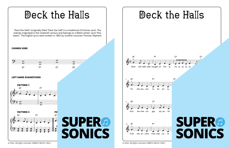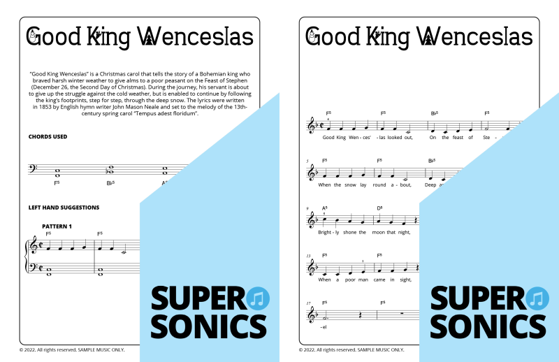 Explore 20 traditional Christmas carols done the Supersonics way in this fun collection. Make Christmas this year super easy by presenting your students with a range of “quick win” favourites. The carols have been re-harmonized in a contemporary style, making them sound upbeat and relevant. Each piece has multiple different accompaniment levels meaning that you can cater for a wide range of student abilities. The chords and keys used are accessible and easy to get your head around. Not overly experienced with teaching from lead sheets? Don’t worry, every piece has detailed instructions meaning that you and your students get to just relax and enjoy the experience!