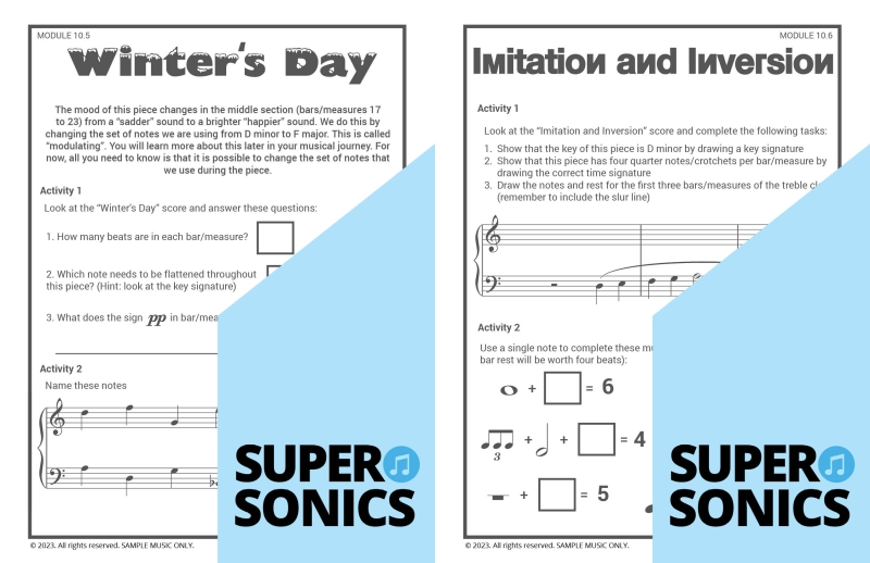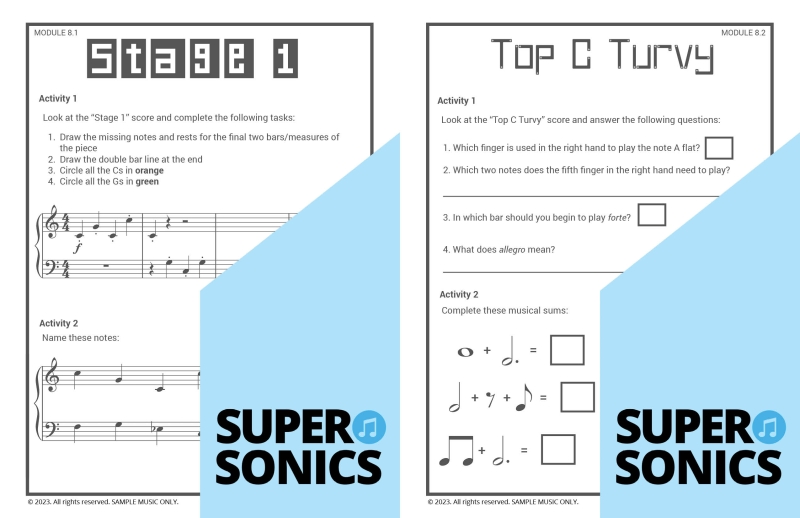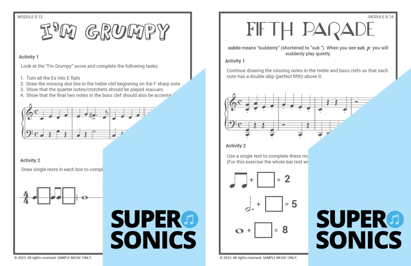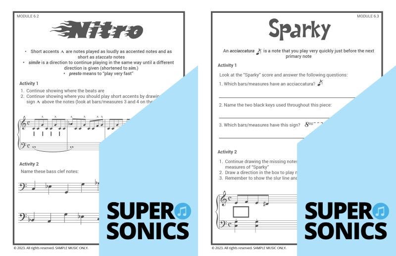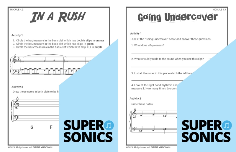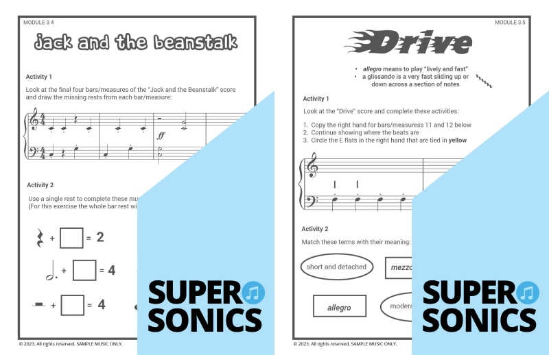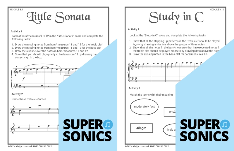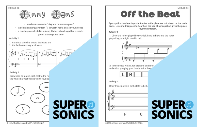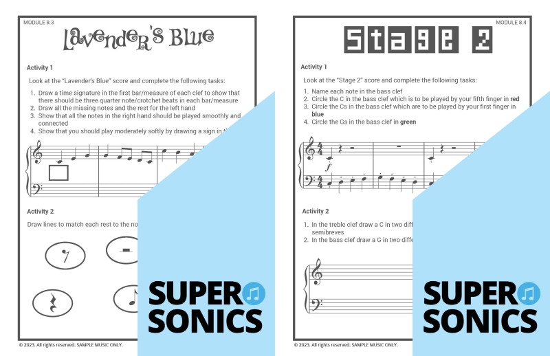 Learn all the theoretical concepts required for Level 2 the fun way with these engaging worksheets. This book features one worksheet per piece so you get lots of practice! You can use these worksheets to introduce and consolidate all the new concepts covered in Supersonics Piano Method Level 2