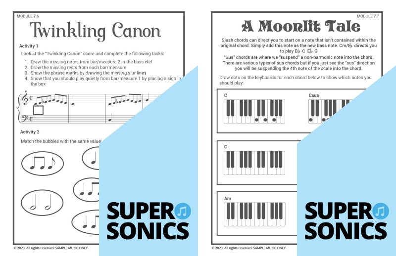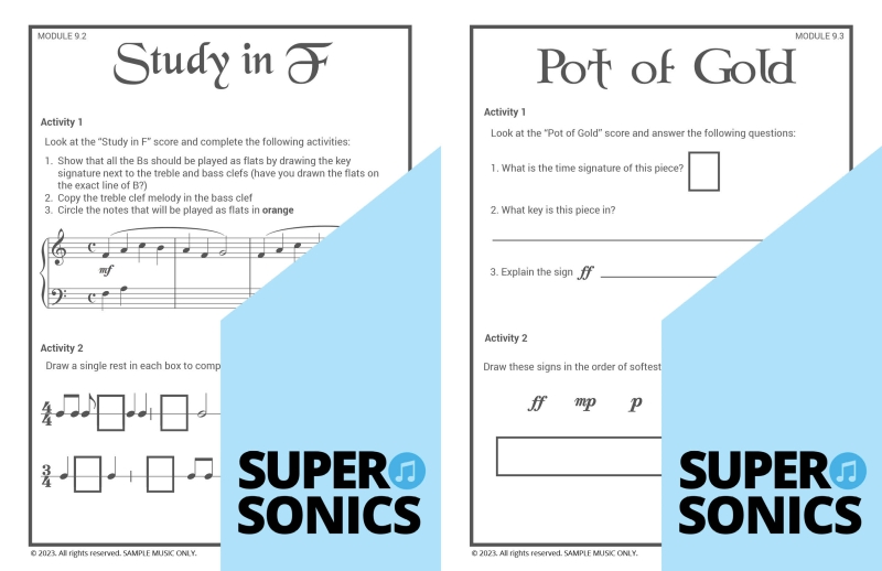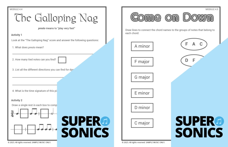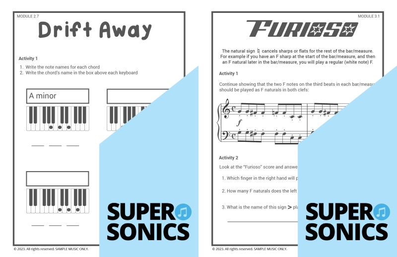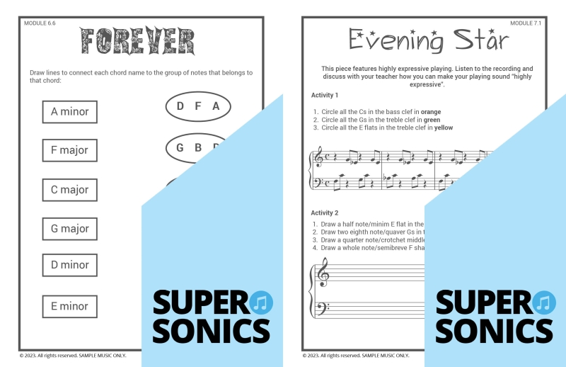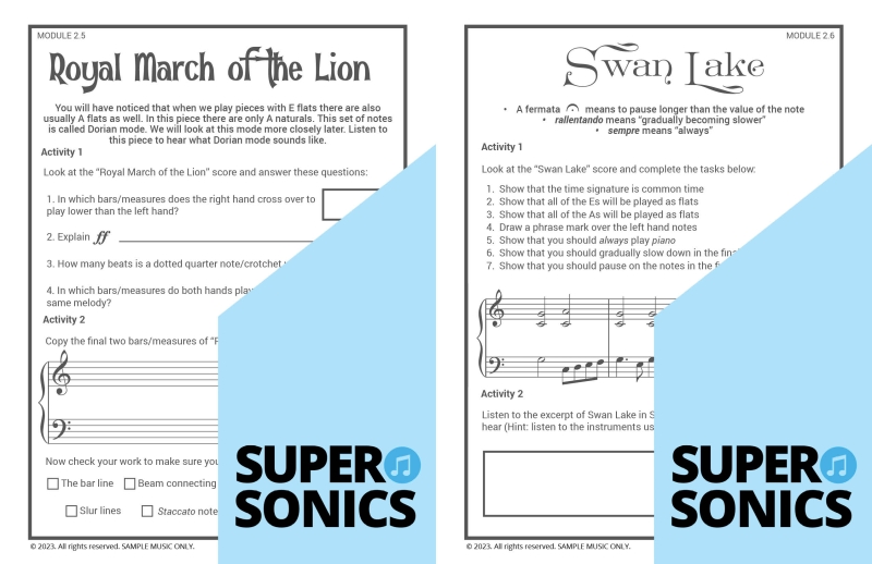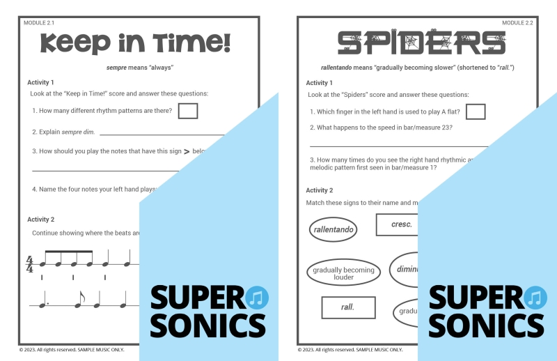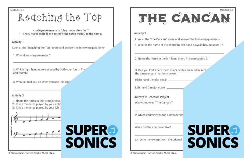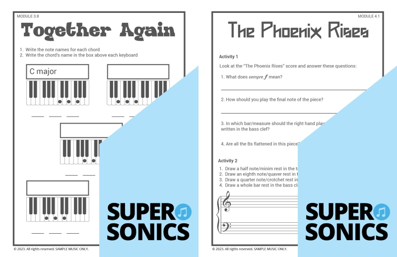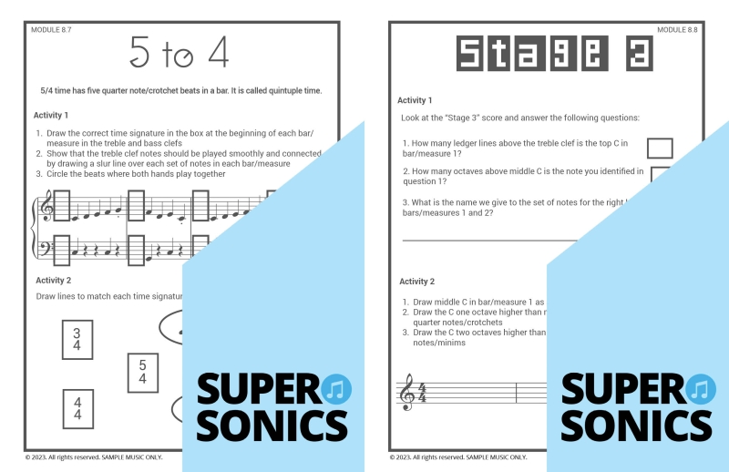 Learn all the theoretical concepts required for Level 2 the fun way with these engaging worksheets. This book features one worksheet per piece so you get lots of practice! You can use these worksheets to introduce and consolidate all the new concepts covered in Supersonics Piano Method Level 2