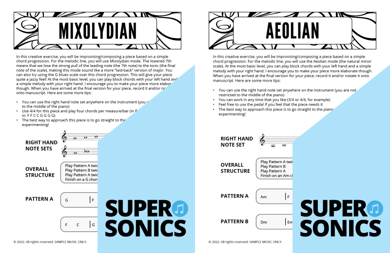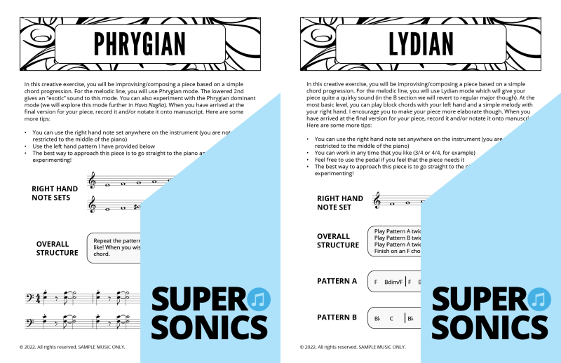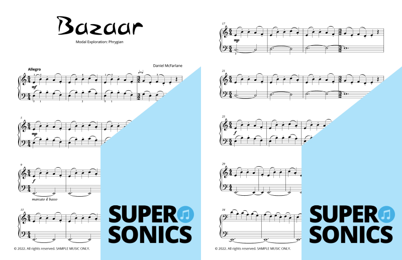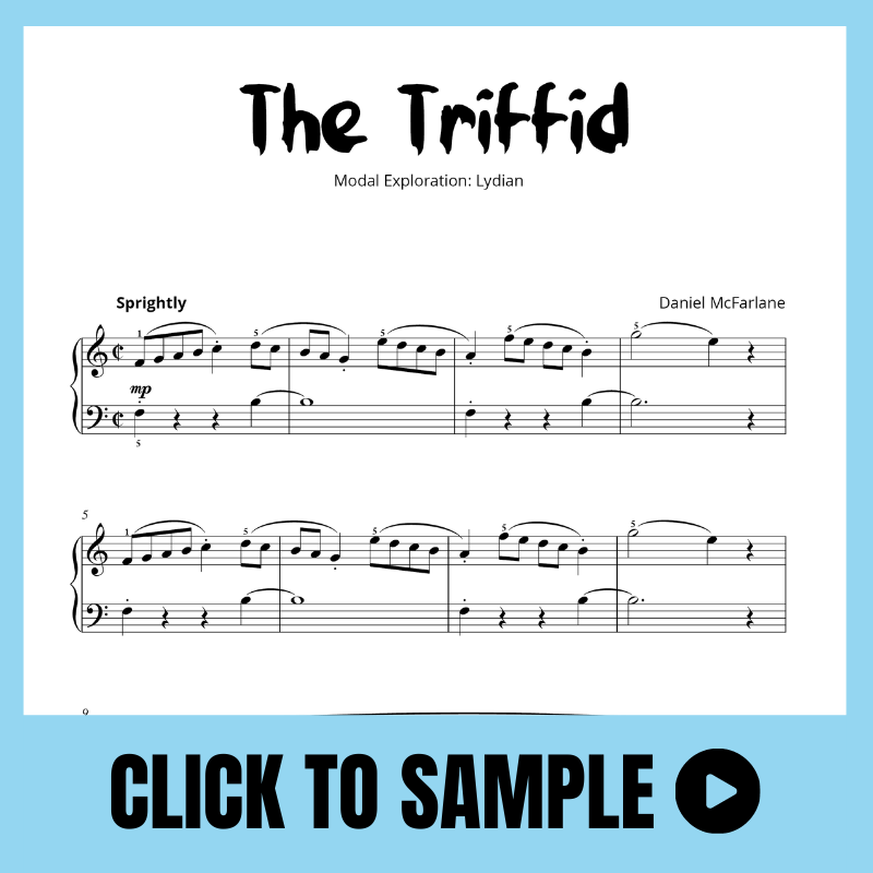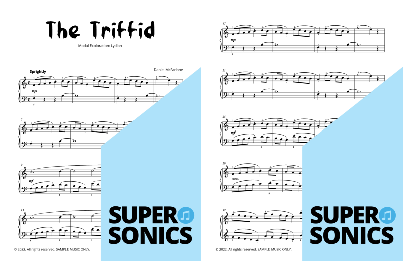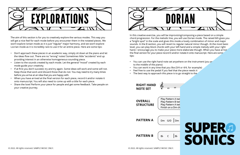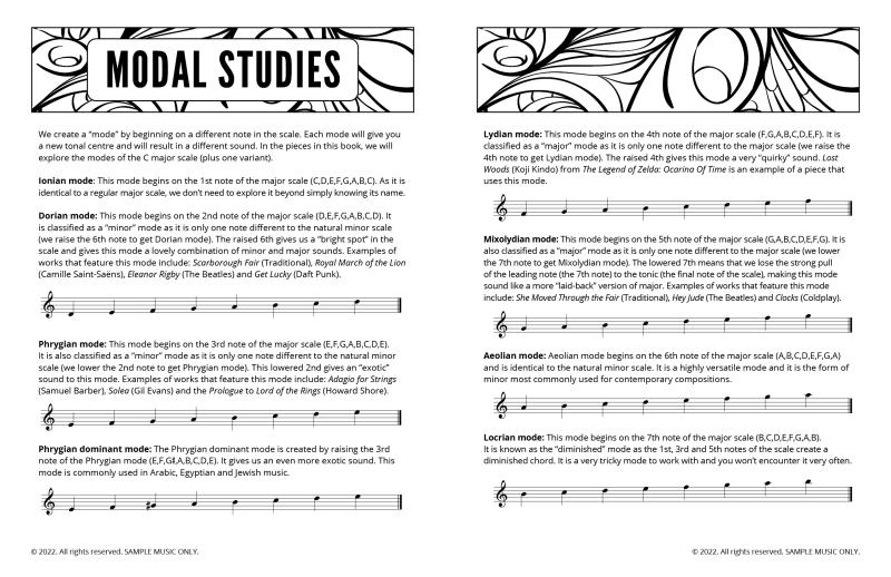 Modal Studies is a colourful, ear-led journey through the modes of the major scale. Students first explore each mode by sound and feel—experimenting with its mood and characteristic tones—then lock it in with a notated piece that spotlights the mode’s unique flavour.