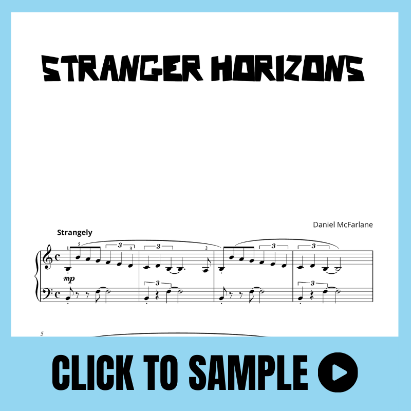 It’s a creative way to build listening skills, pattern recognition, and confident note-finding. Along the way, learners meet a variety of textures and grooves, with gentle prompts for improvisation or teacher-guided exploration before performing the written study.