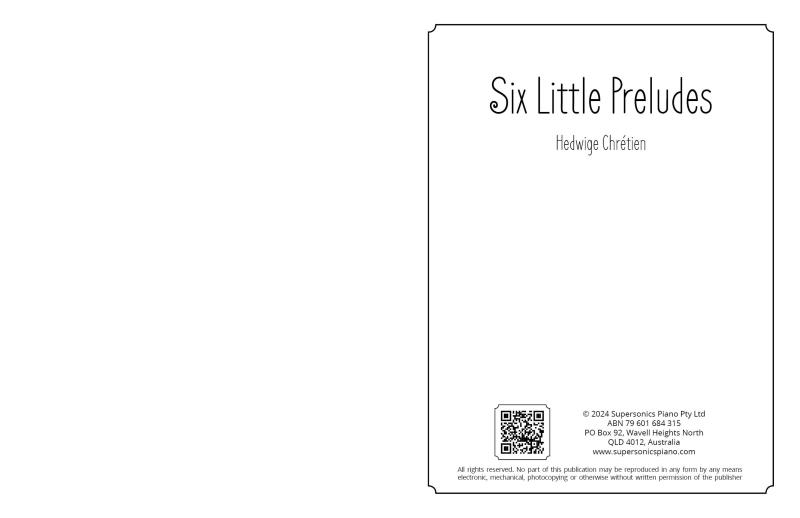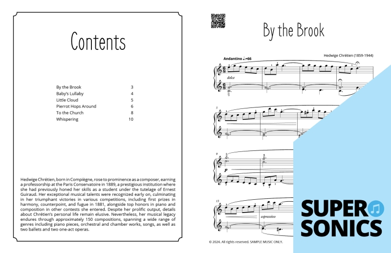 The six little preludes in this book represent excellent examples of her musical skill, and are all highly expressive and descriptive. They make superb concert repertoire.