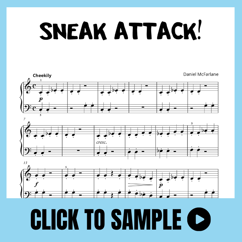 Delight your students with these fun, playful pieces for Early Elementary students. They make great additions to any other teaching method. You’ll get the benefit of exciting, original music to learn – without changing the core lesson books you’re teaching from.