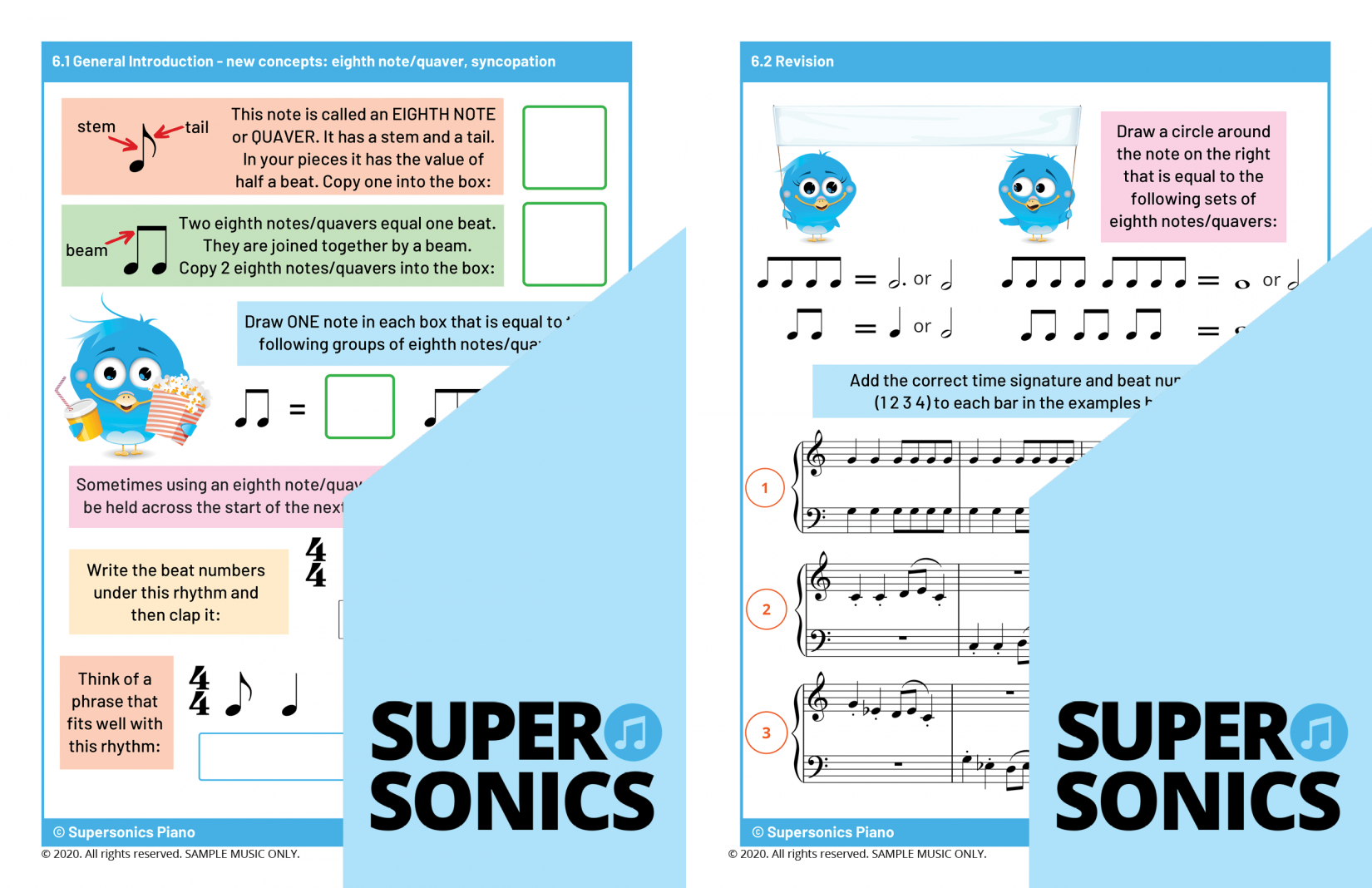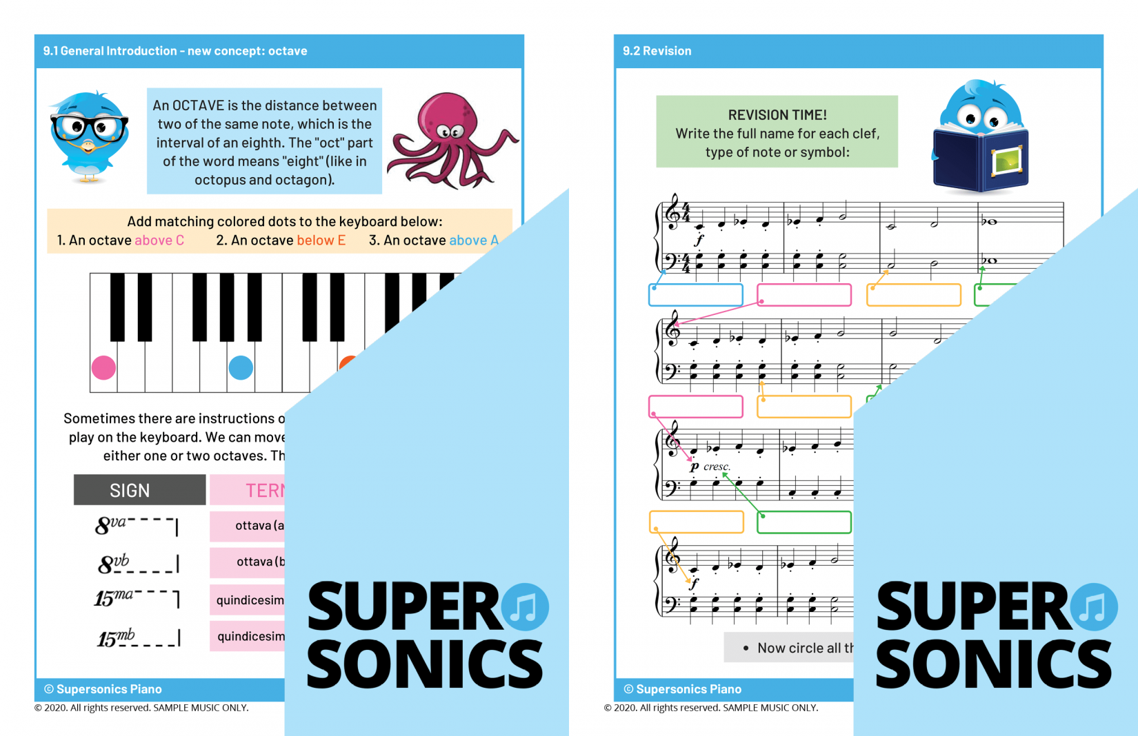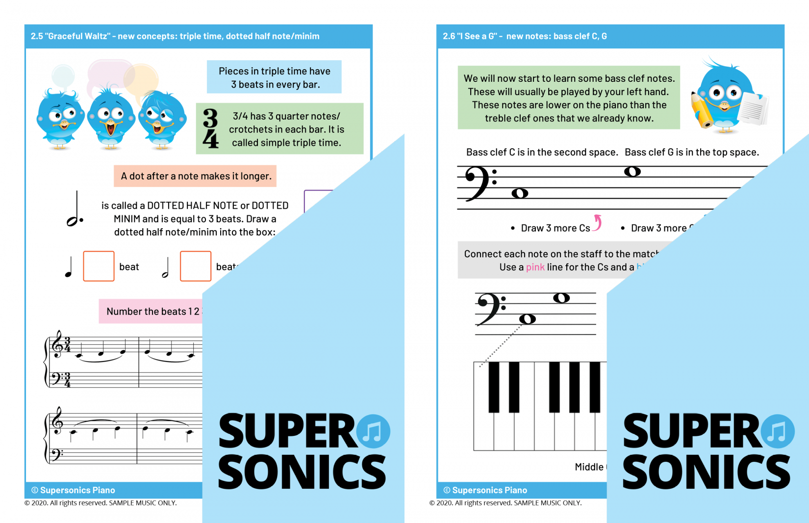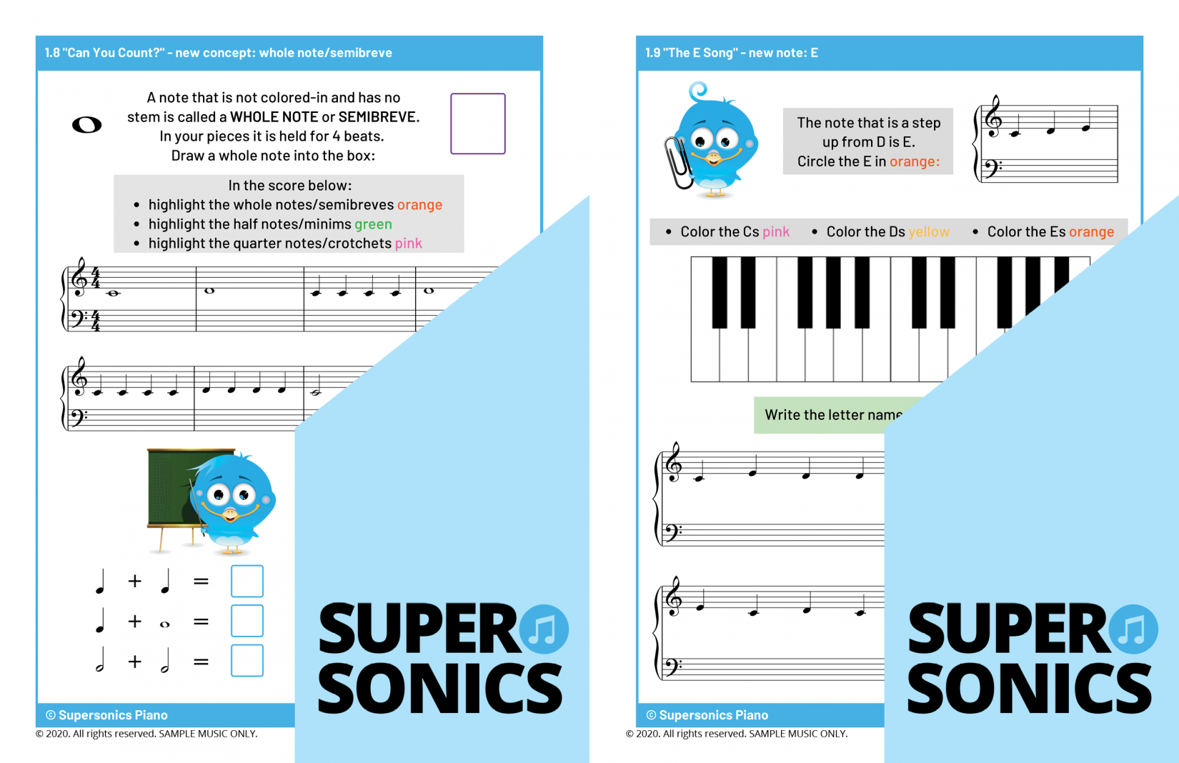 - Content: This 48 page beginner theory book pairs with Level 1 of the Supersonics Piano Method, the Supersonics Piano Method Junior series and the Reading and Technique section in Quick Start A and gives students all the foundational knowledge they need to start their musical journey.