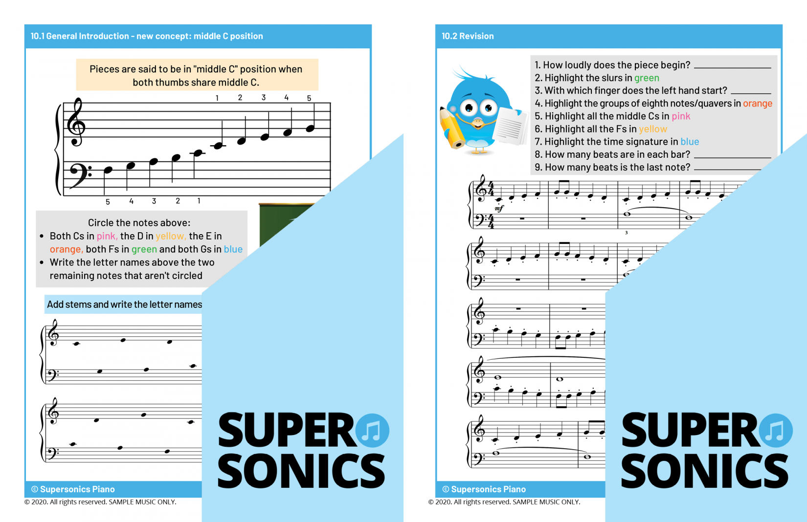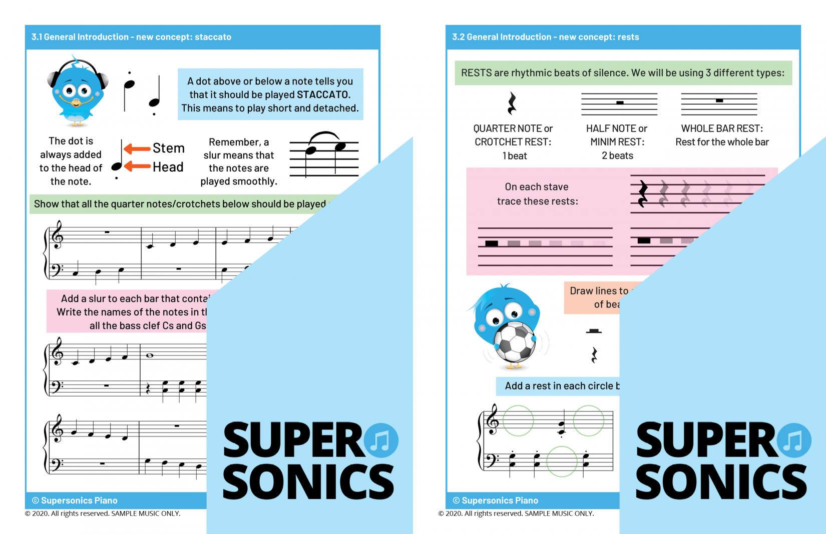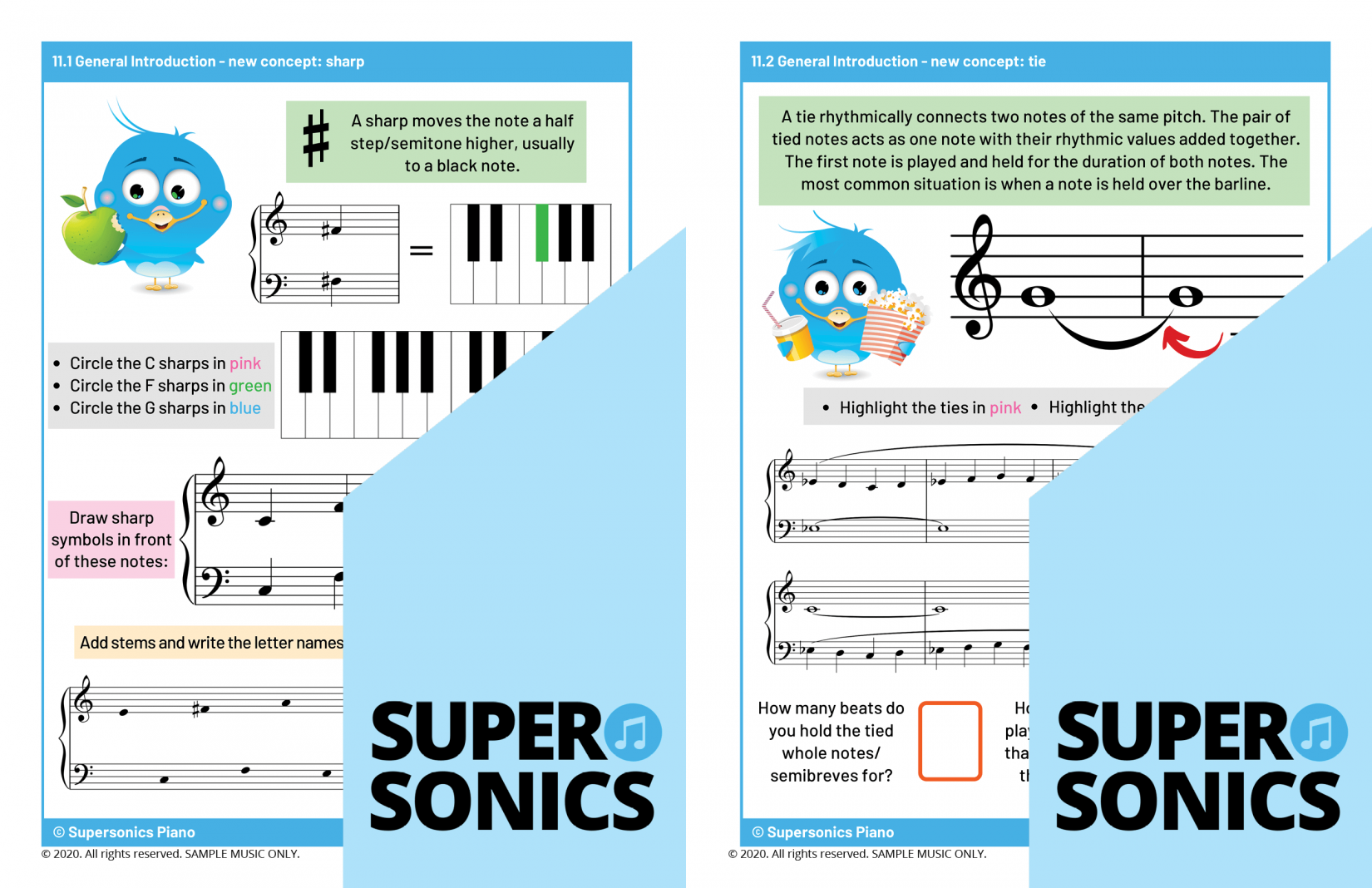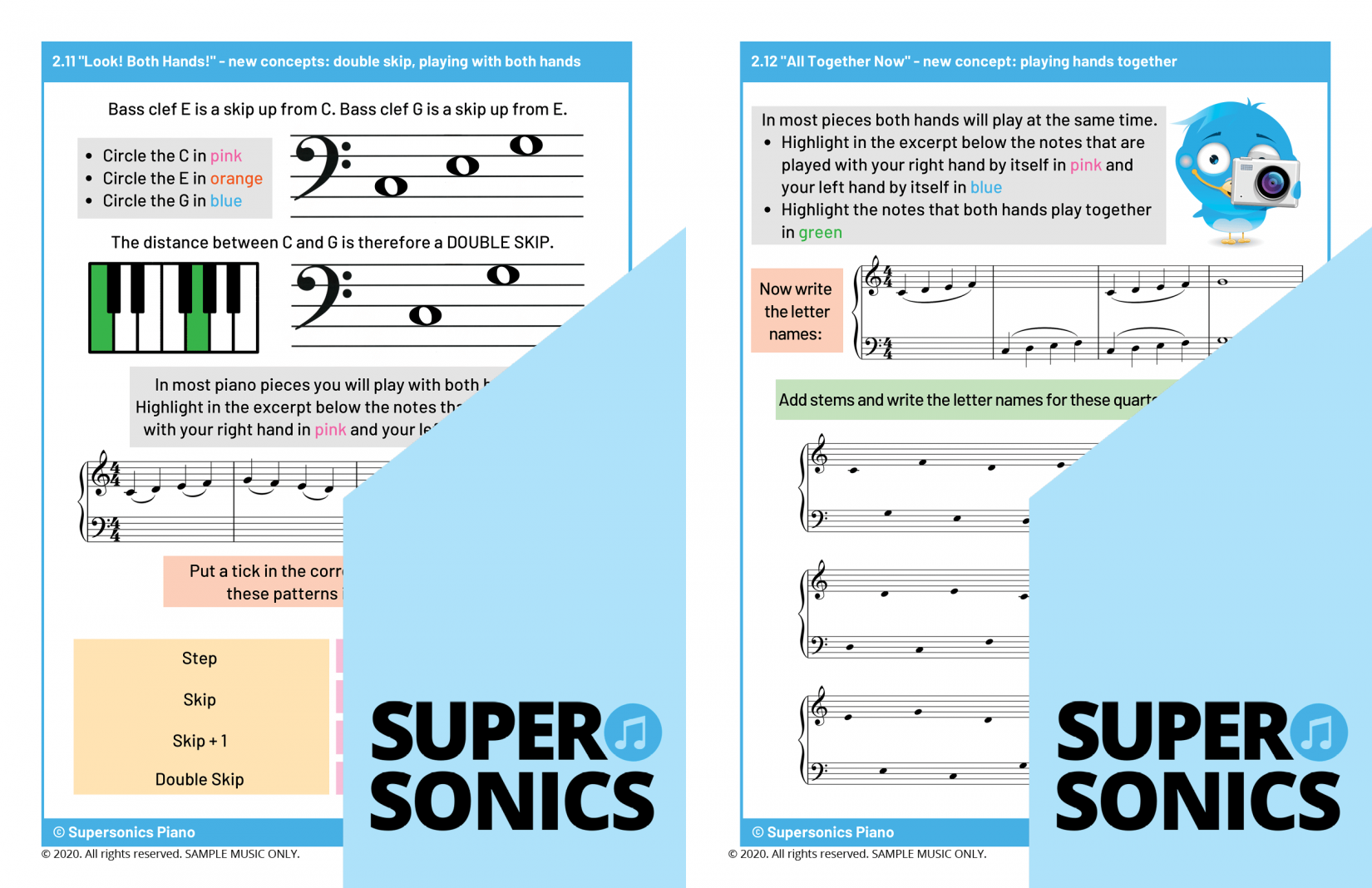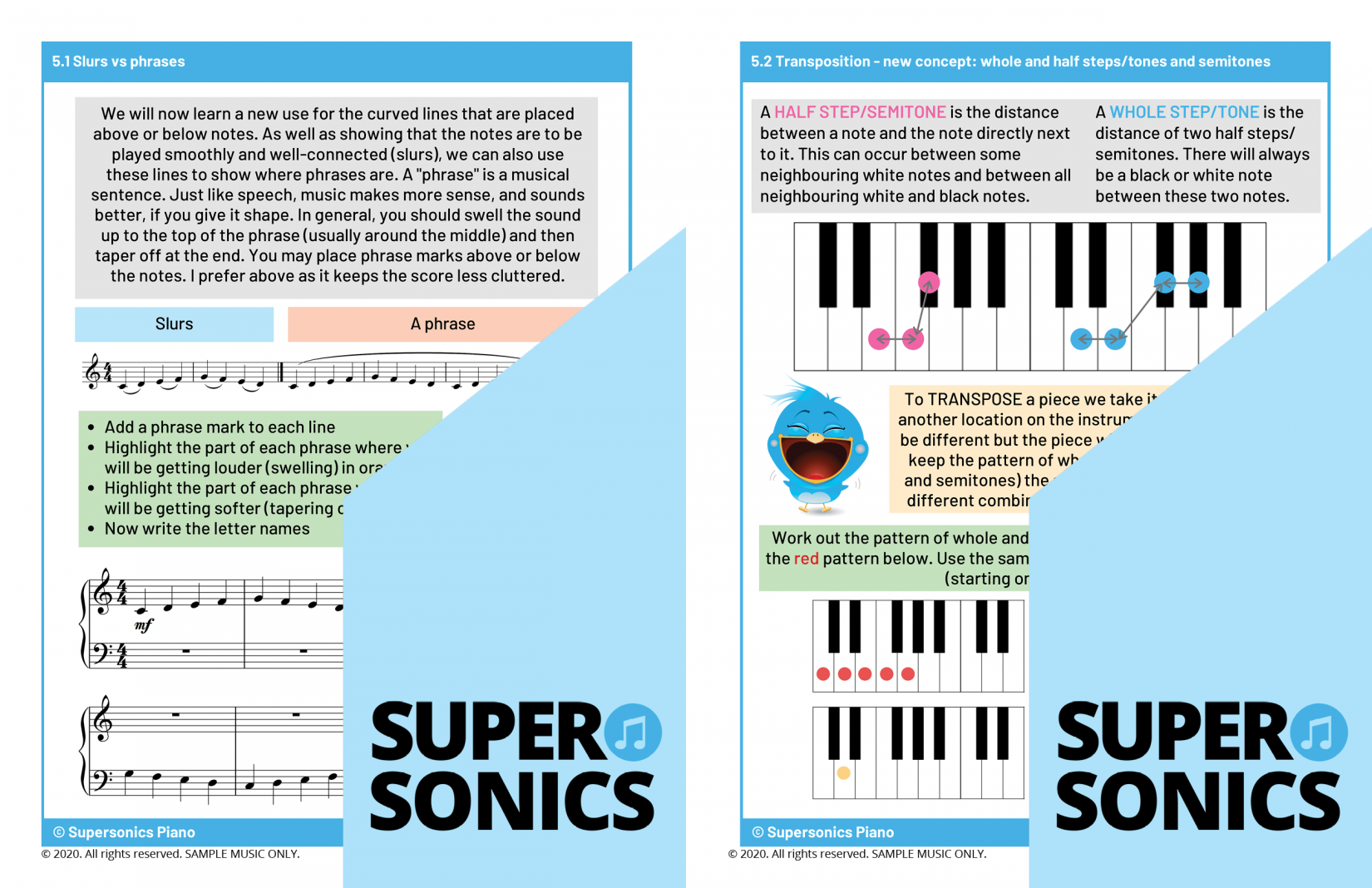 - Content: This 48 page beginner theory book pairs with Level 1 of the Supersonics Piano Method, the Supersonics Piano Method Junior series and the Reading and Technique section in Quick Start A and gives students all the foundational knowledge they need to start their musical journey.