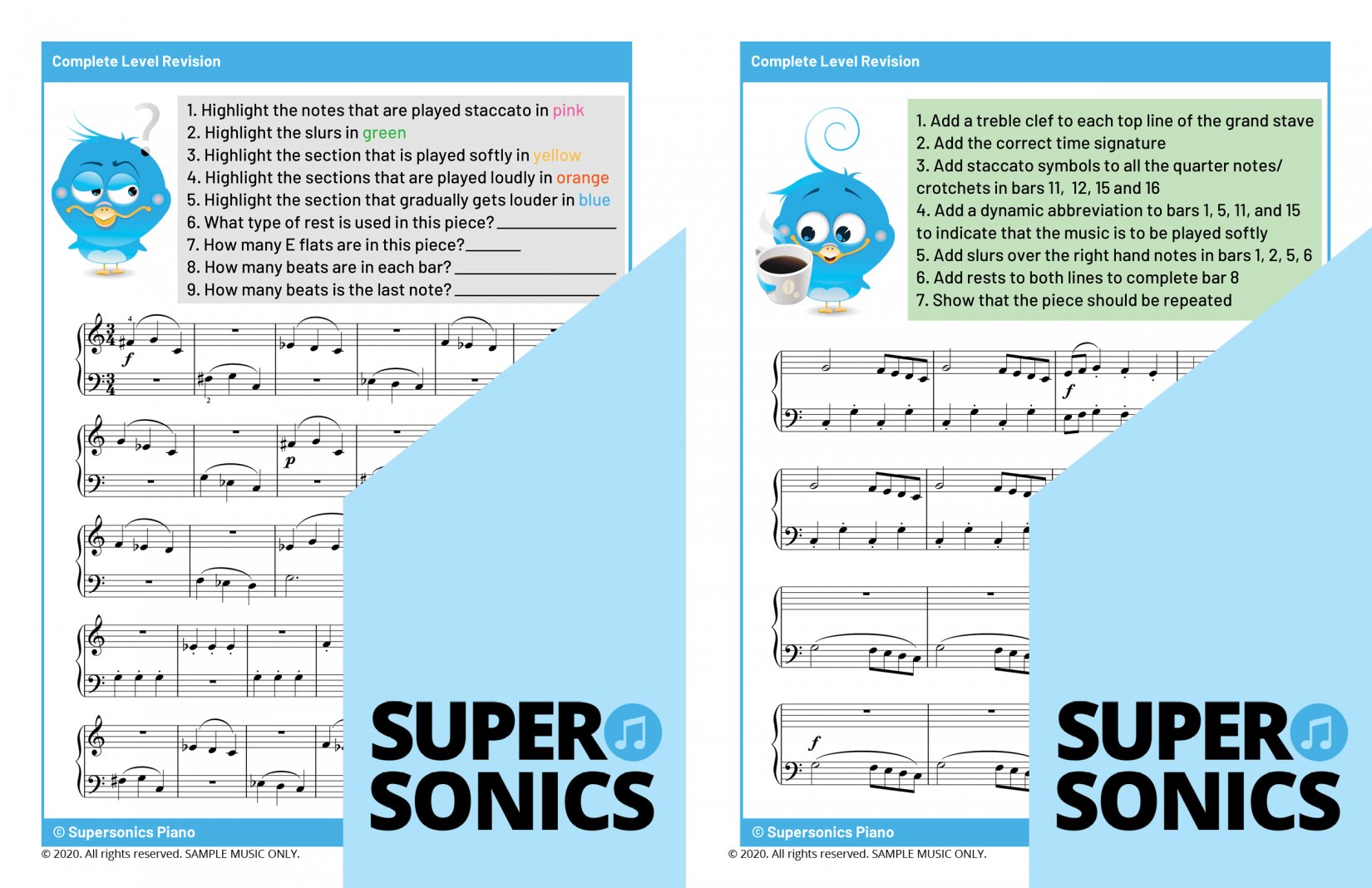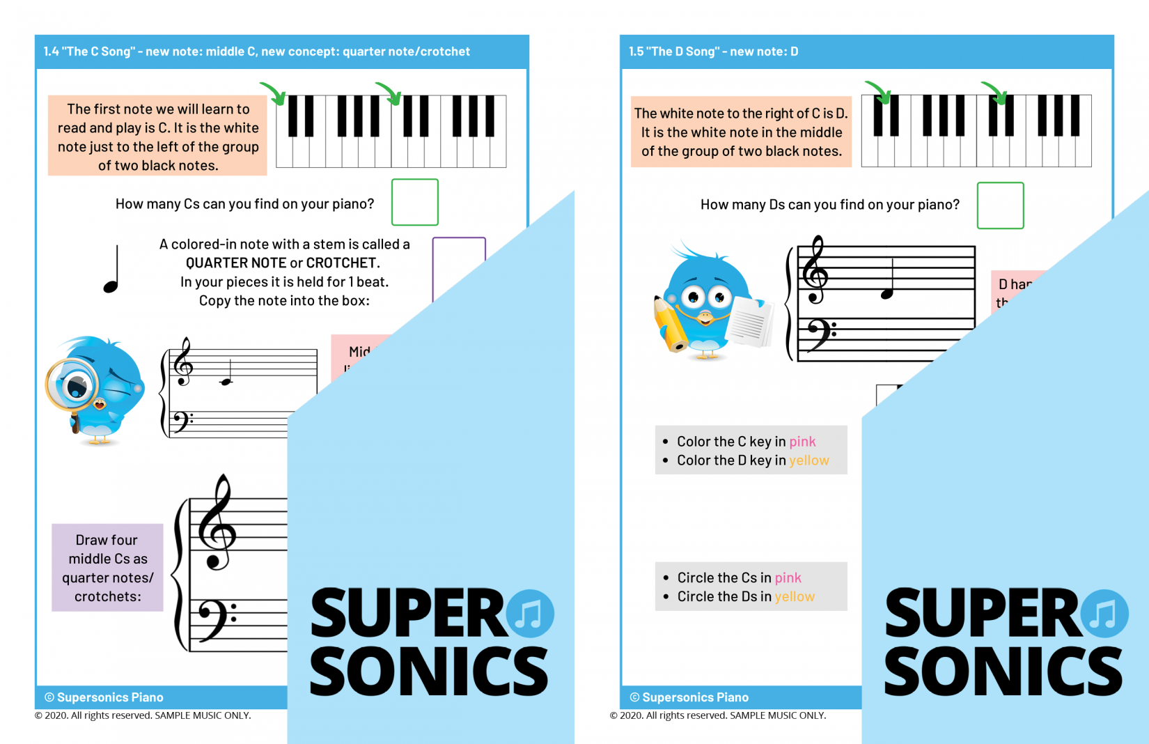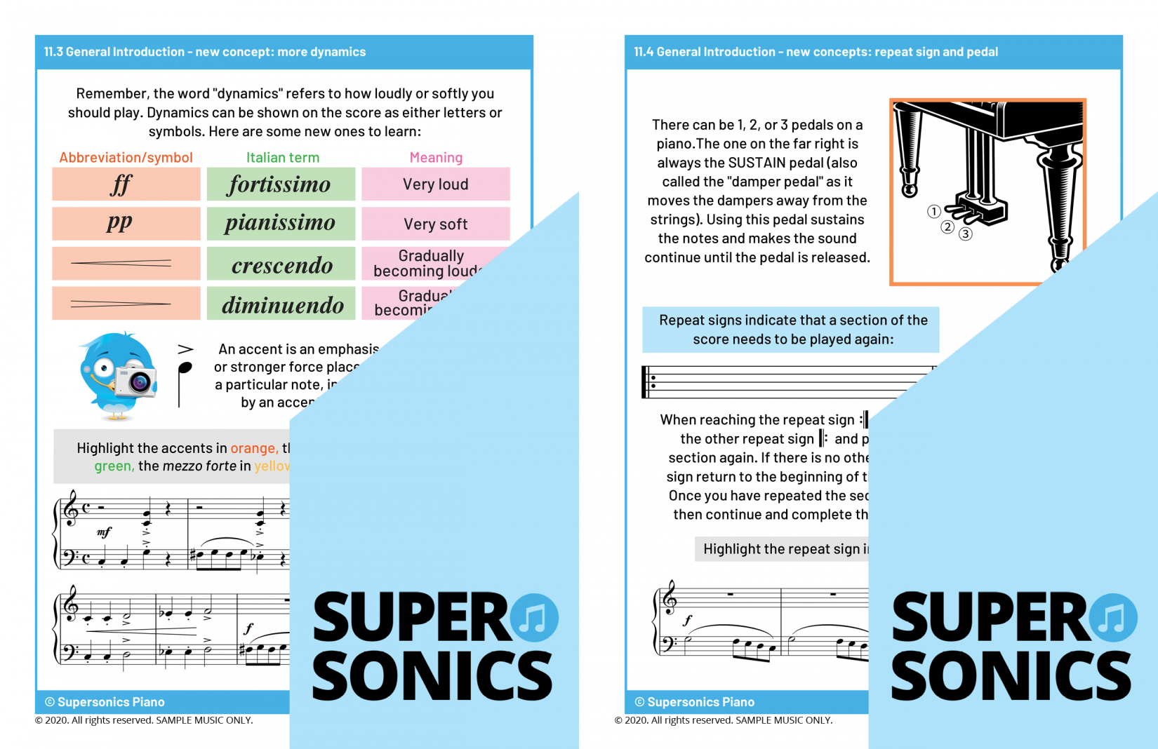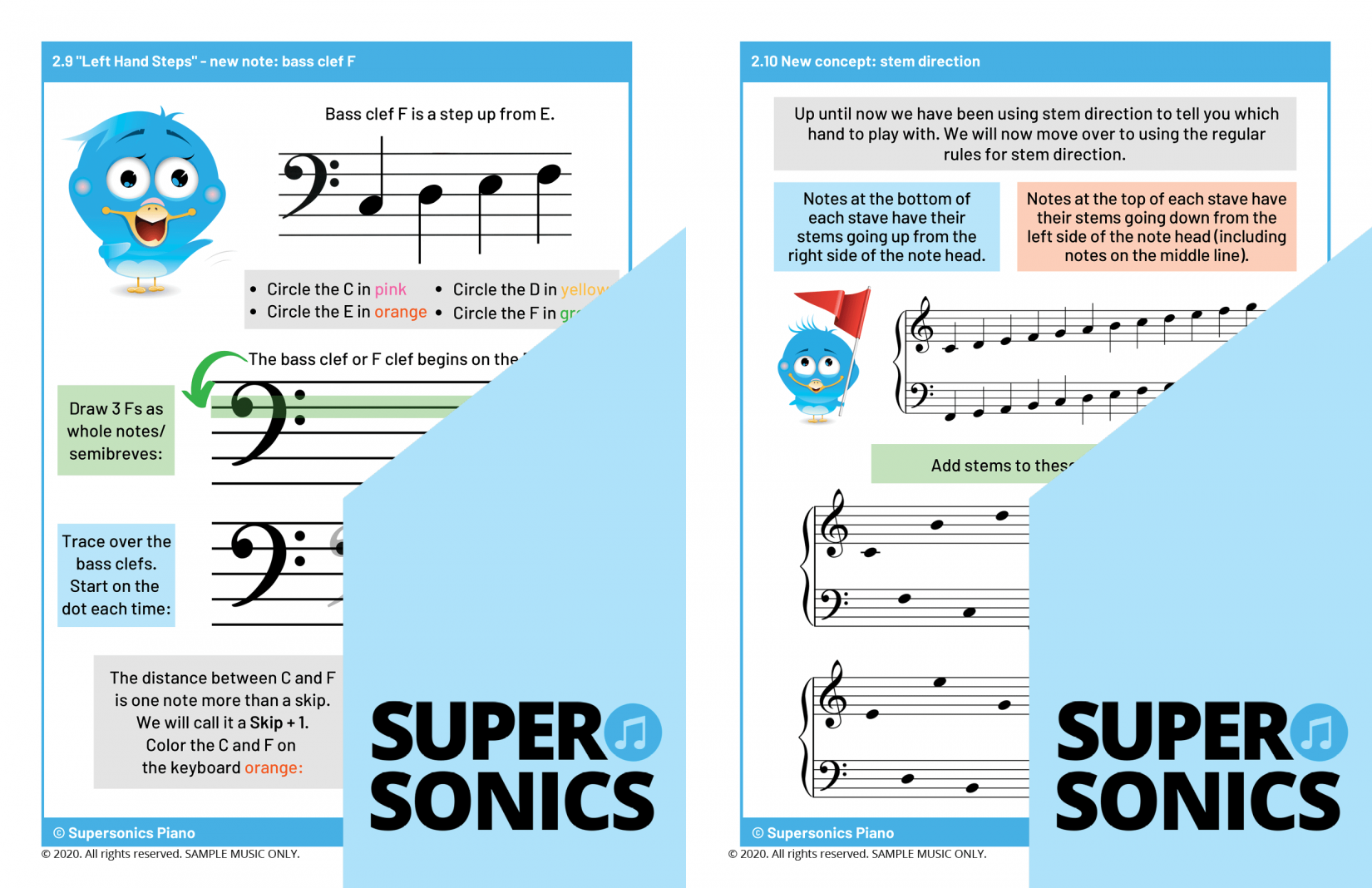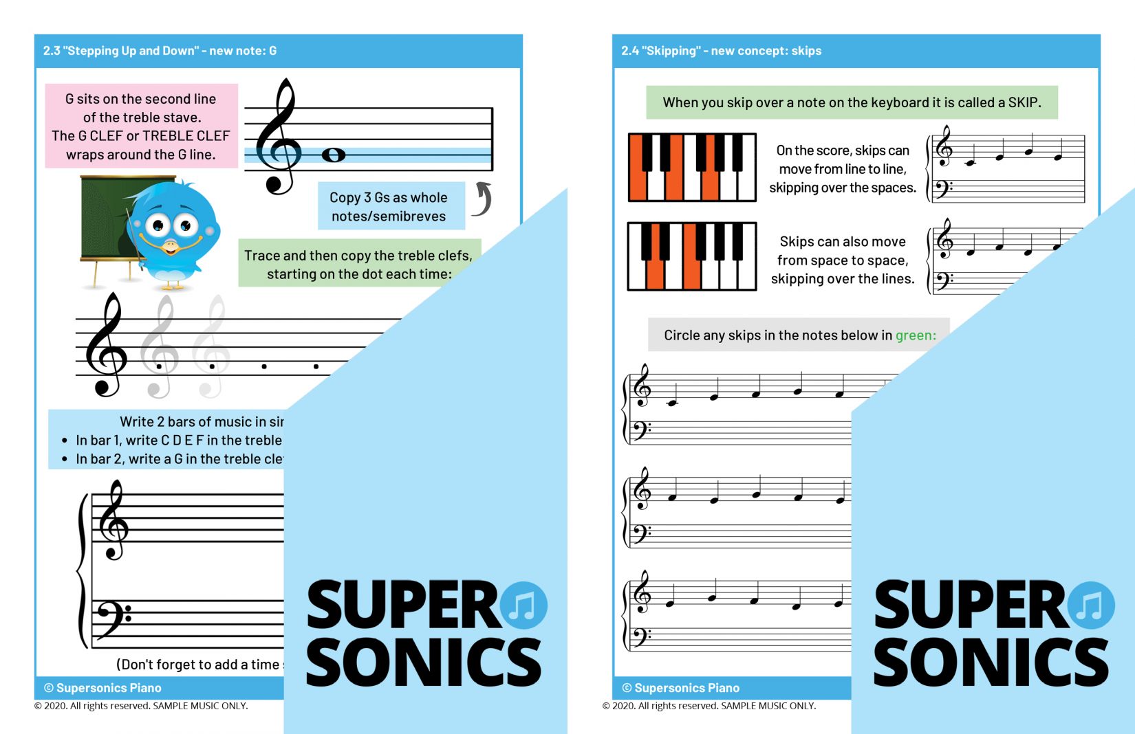 - Content: This 48 page beginner theory book pairs with Level 1 of the Supersonics Piano Method, the Supersonics Piano Method Junior series and the Reading and Technique section in Quick Start A and gives students all the foundational knowledge they need to start their musical journey.