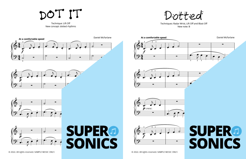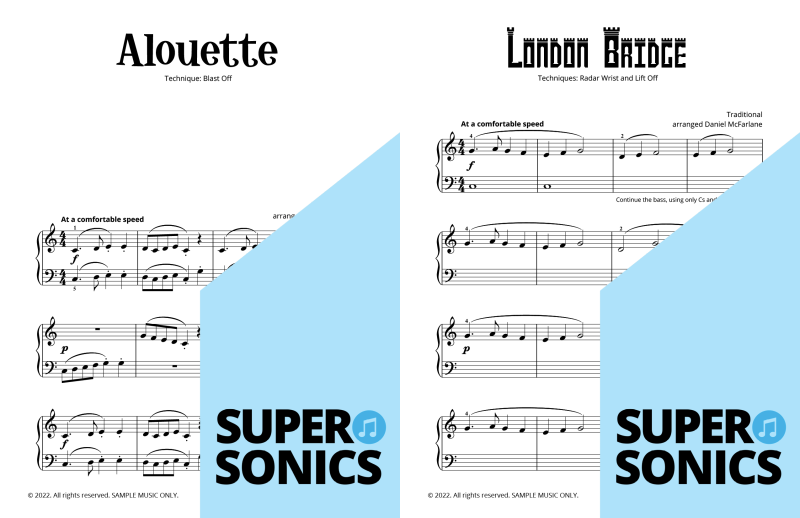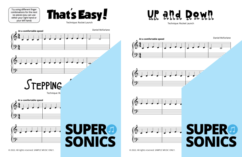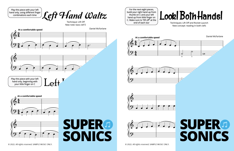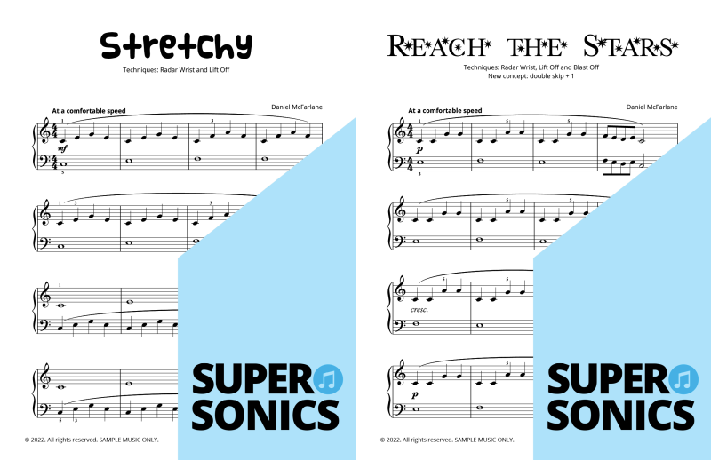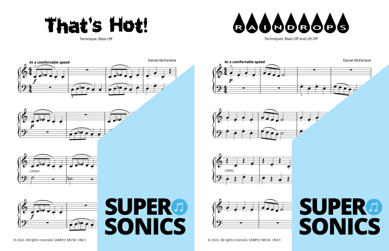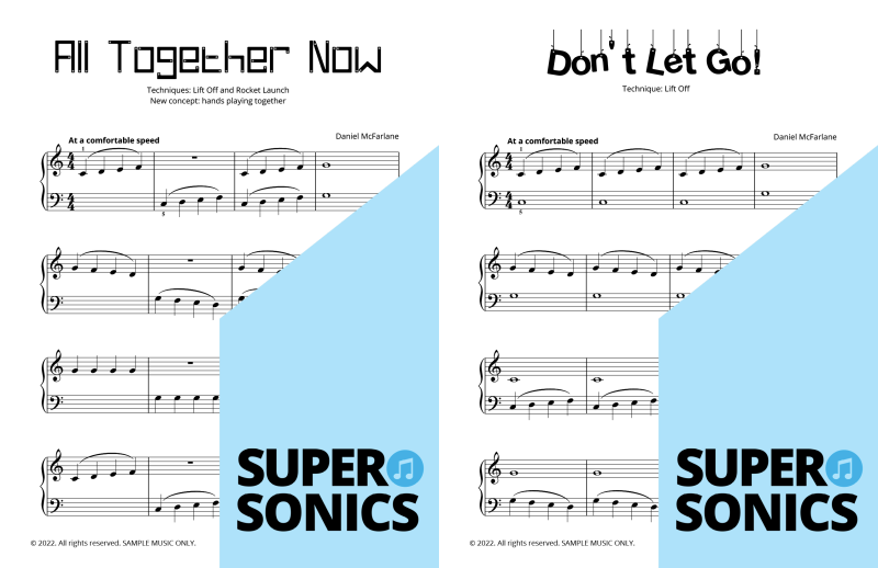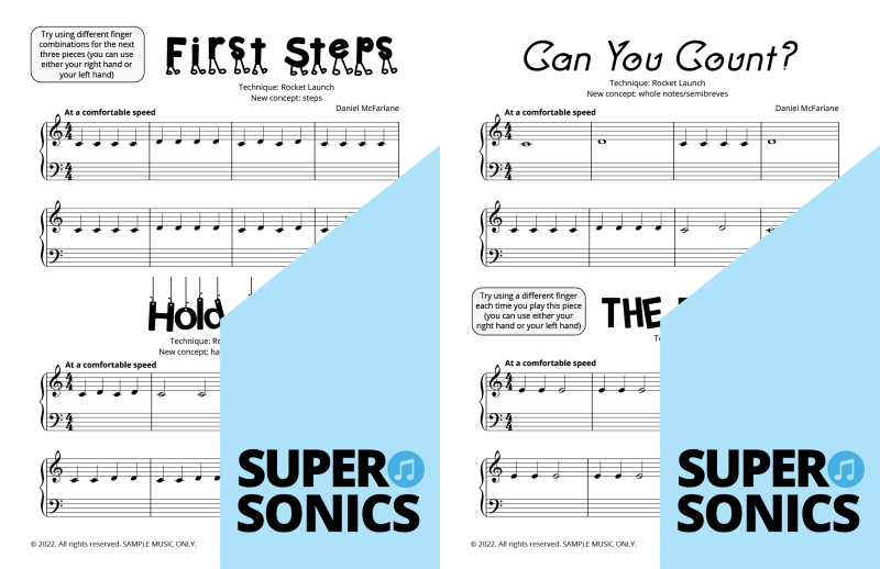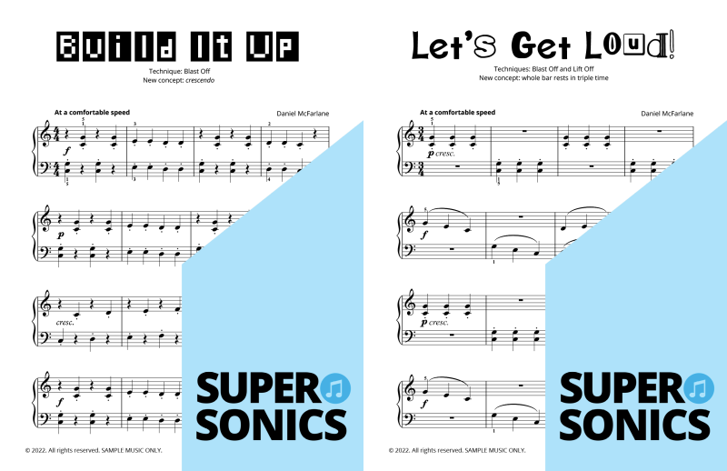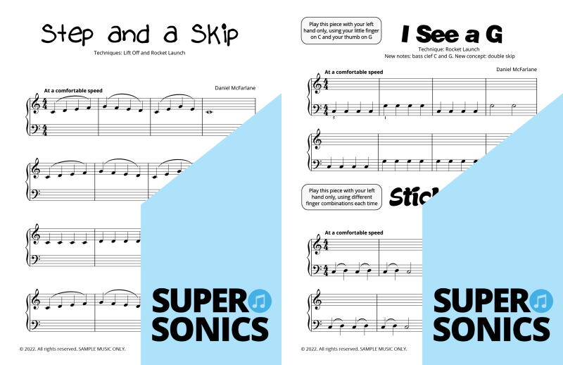 Watch your students fall in love with the piano, using the Supersonics Piano method – starting with this Level 1 book for beginners.