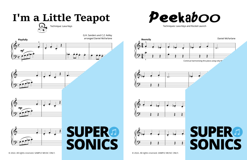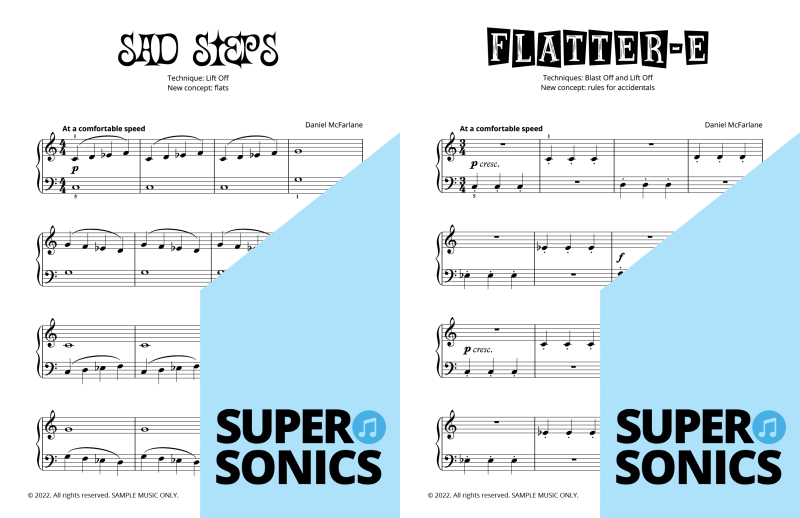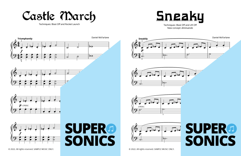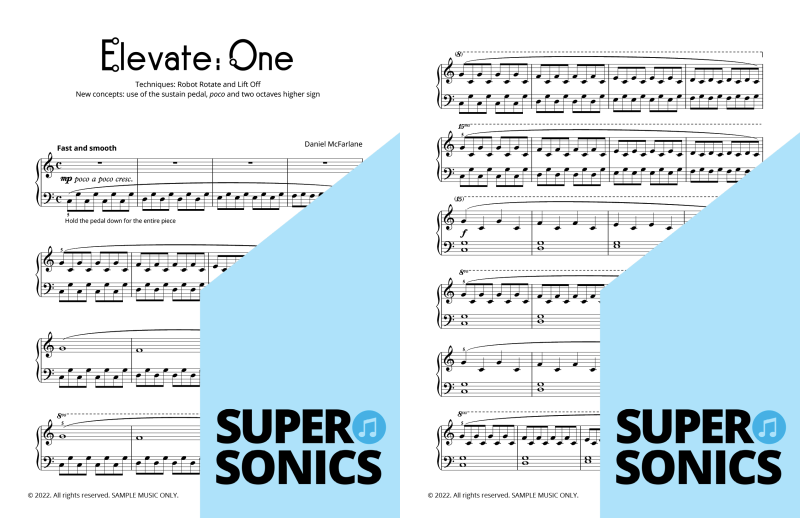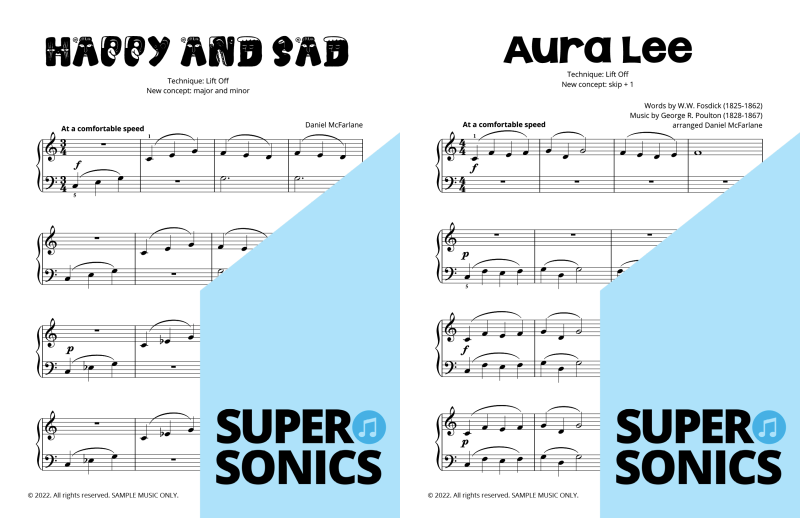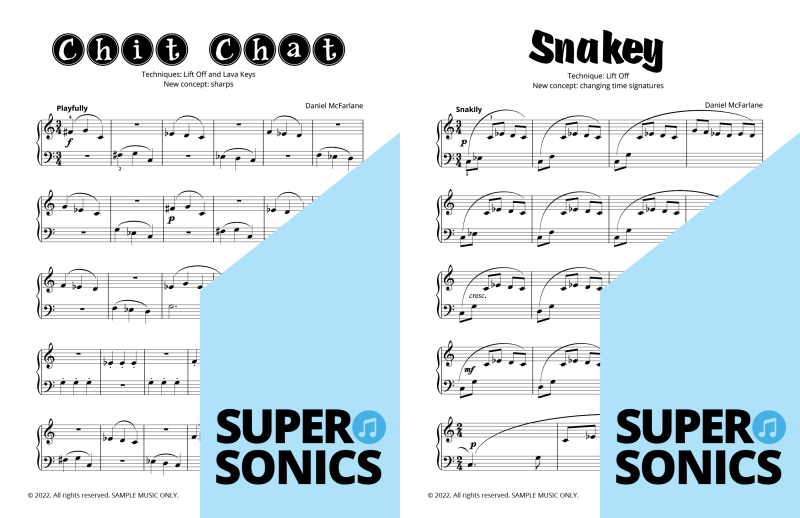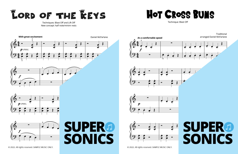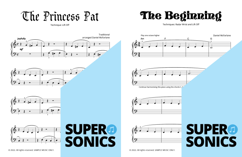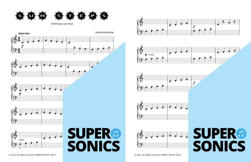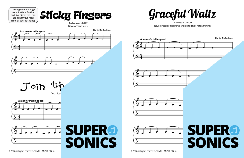 Watch your students fall in love with the piano, using the Supersonics Piano method – starting with this Level 1 book for beginners.