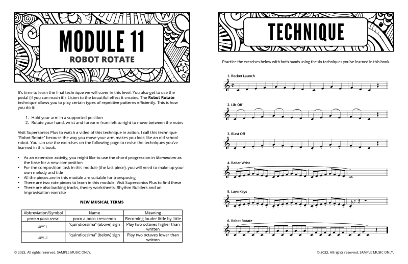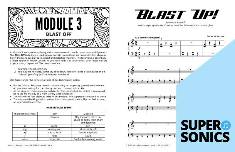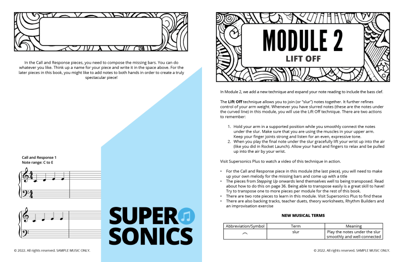 - BONUS FREE ACCESS to Supersonics Plus material: Get rote pieces, backing tracks, teacher duets, theory, rhythm builders and improvisation pieces that work with this method, to give you a fun and rich teaching experience for you and your students.