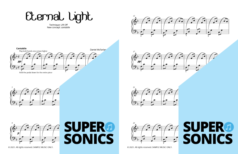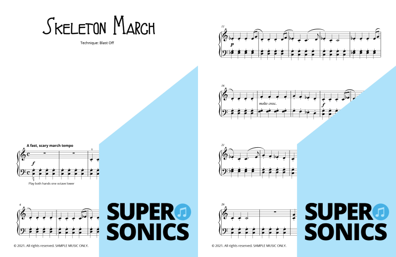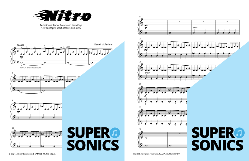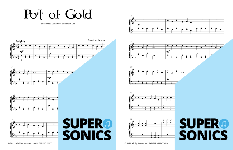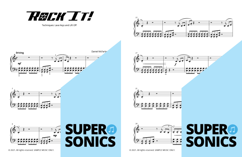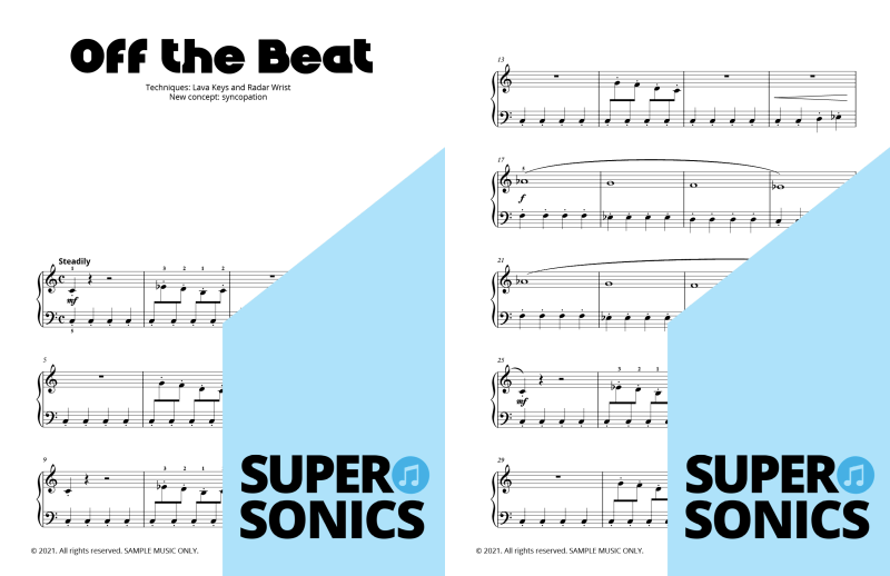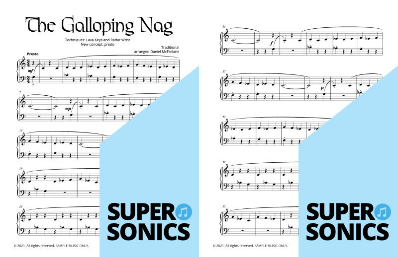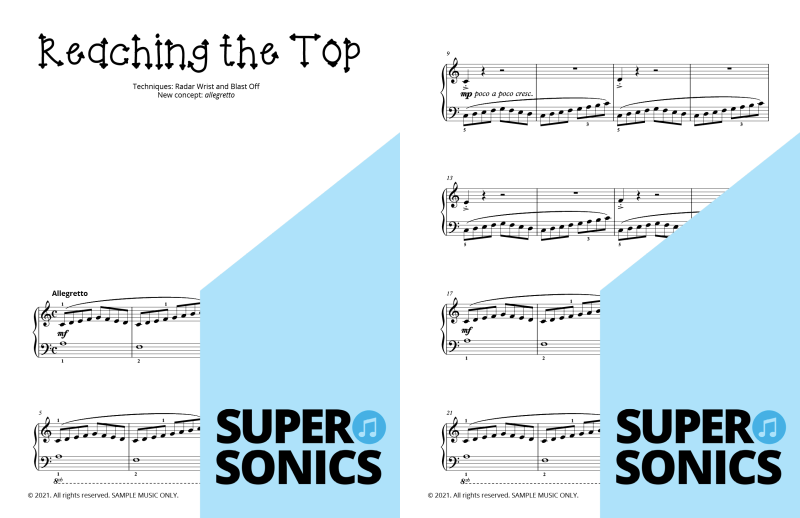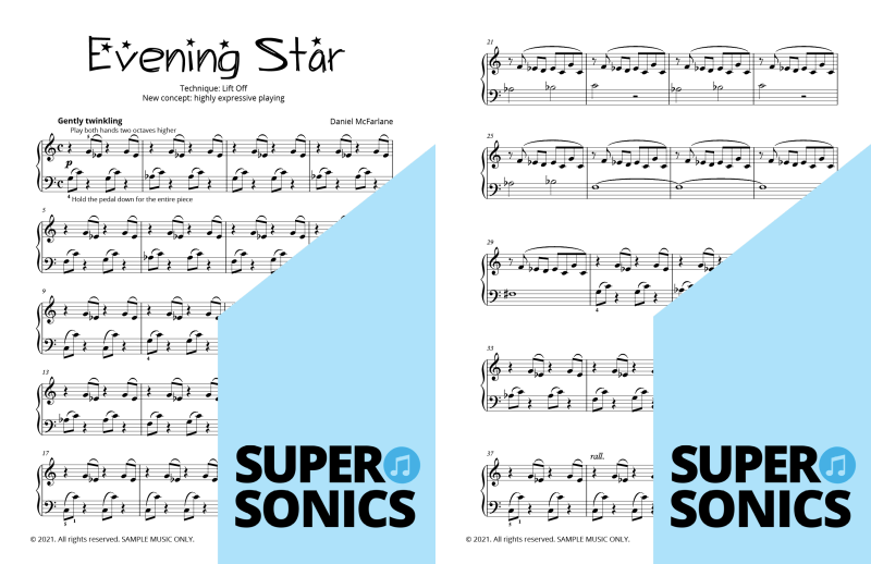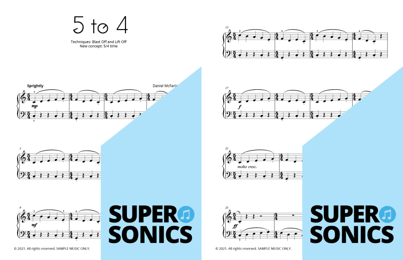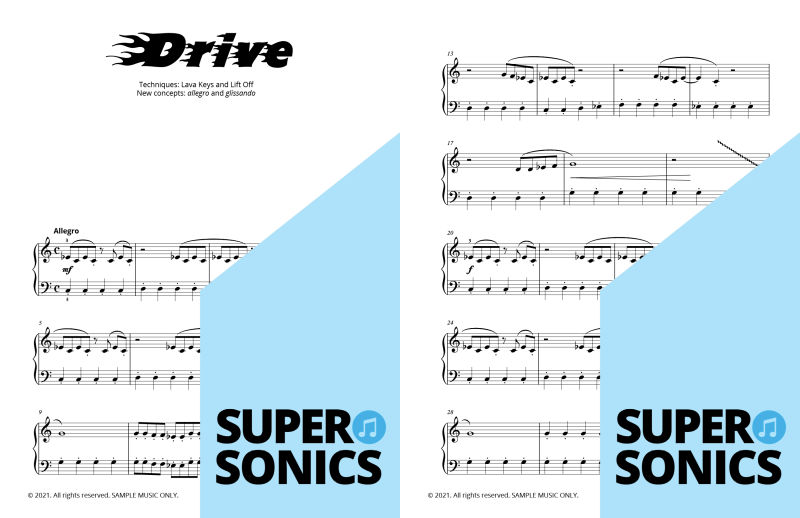 Level 2 of the Supersonics Piano Method is full of more engaging pieces, guaranteed to continue to excite your students – while building their technical skills and note reading range. The best piano method books provide a fun, open-minded approach to learning and teaching piano. And this is what the Supersonics Method is all about.