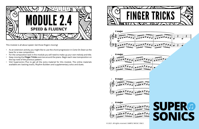 By the end of Supersonics Piano Method Level 2 your students will be playing expressively across a range of music from different eras, sparking their love of music in all its styles and genres.
