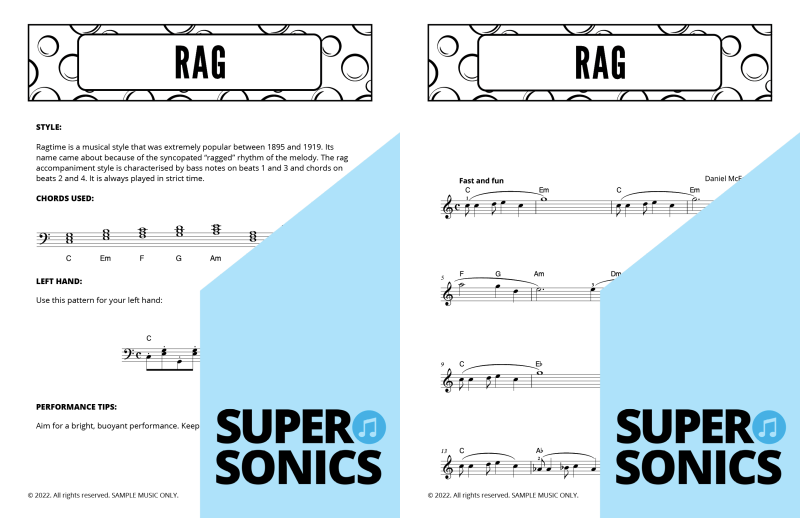 Watch student confidence soar as they pair piano chords with melodies in a range of contemporary styles, including ballads, waltzes, rag and jazz tunes.