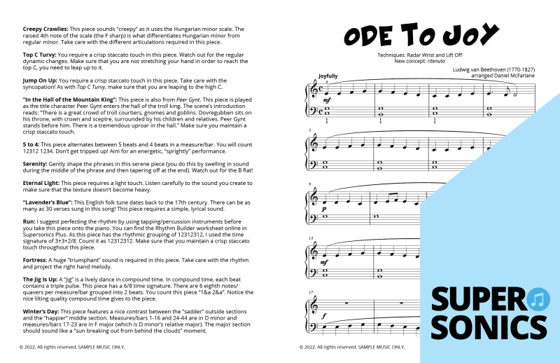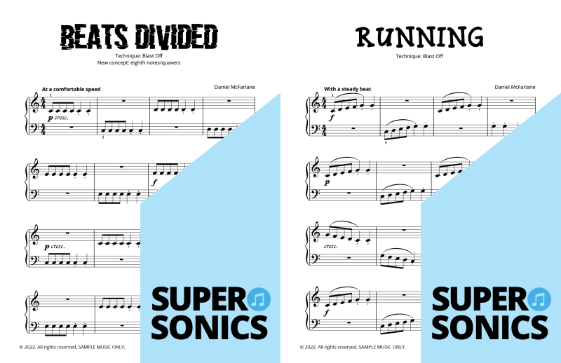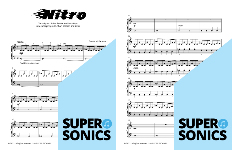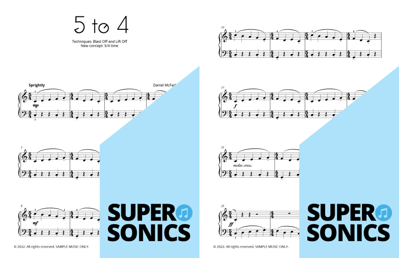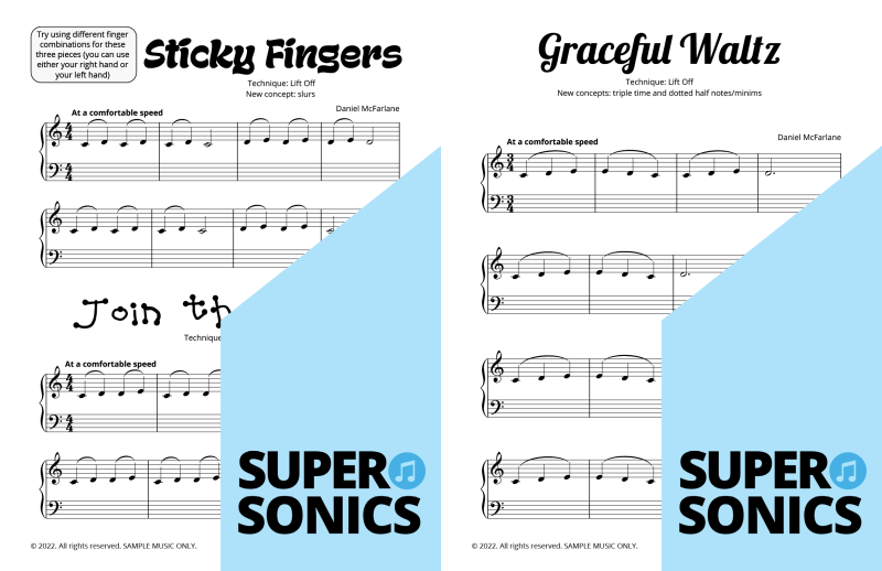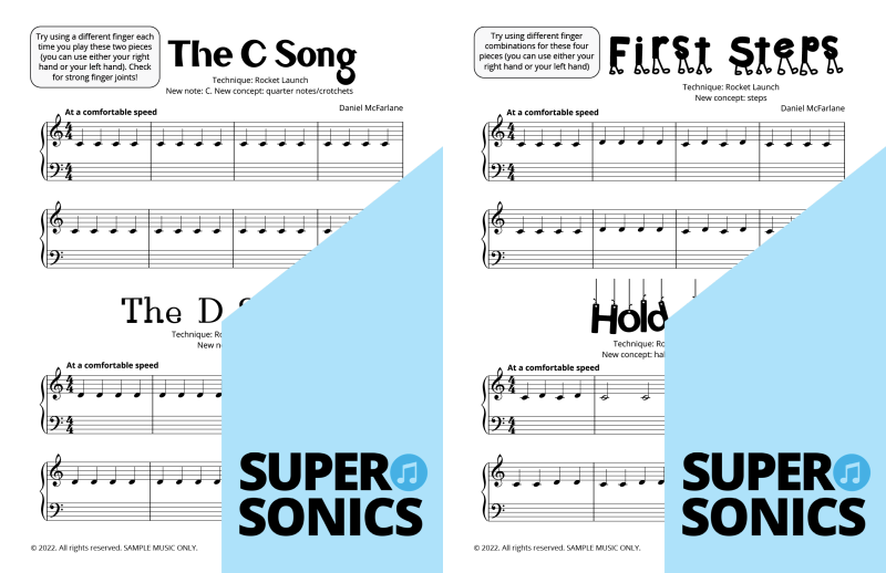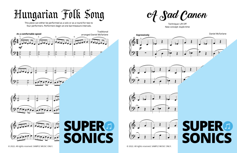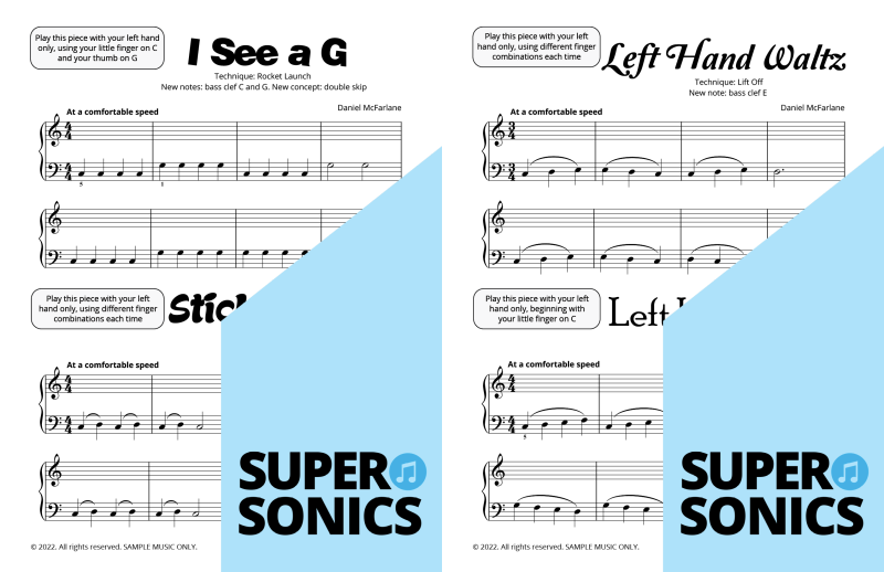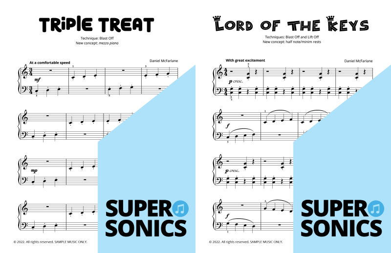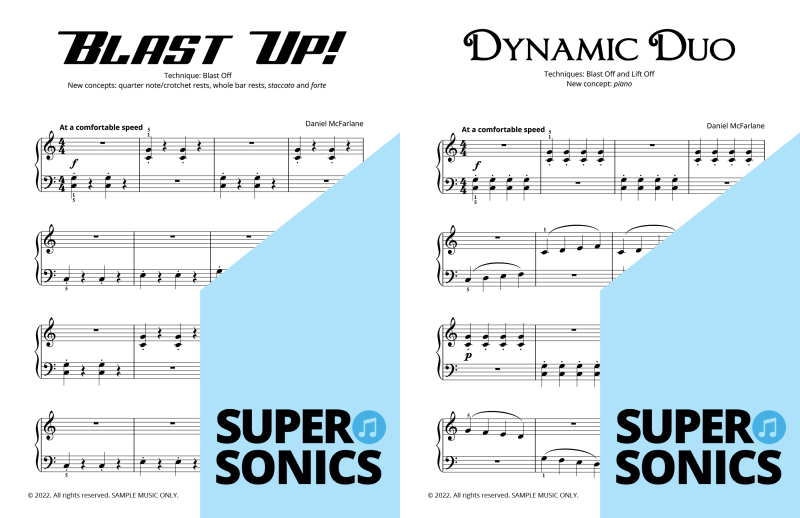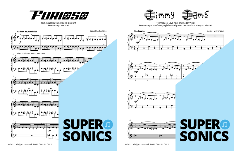 Are you looking to buy piano music books to suit an older student? Daniel McFarlane’s fun and engaging Supersonics Method has been adapted with an accelerated pace for students aged approximately 12 years old and over.