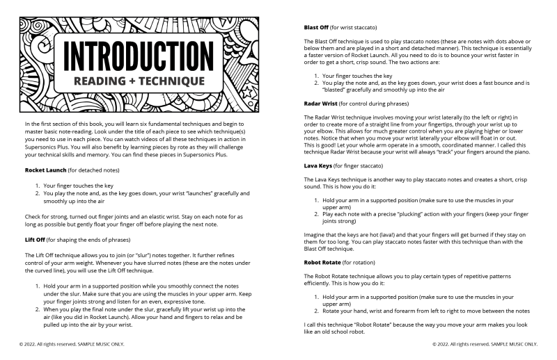 A: Each Method Book is licenced for one student. If you’d like to use the Supersonics Method for your entire studio, we recommend upgrading to Supersonics Pro so that you can either legally print copies of this book for all your students or use the discount on print books. You can offset the cost of the membership by charging the full price for print books or by adding a resource fee to your lessons.