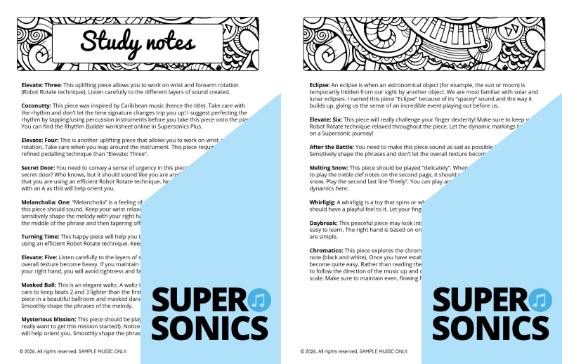 Streamline your older students’ journey through the Supersonics Method with this faster paced music book for adults and teens.